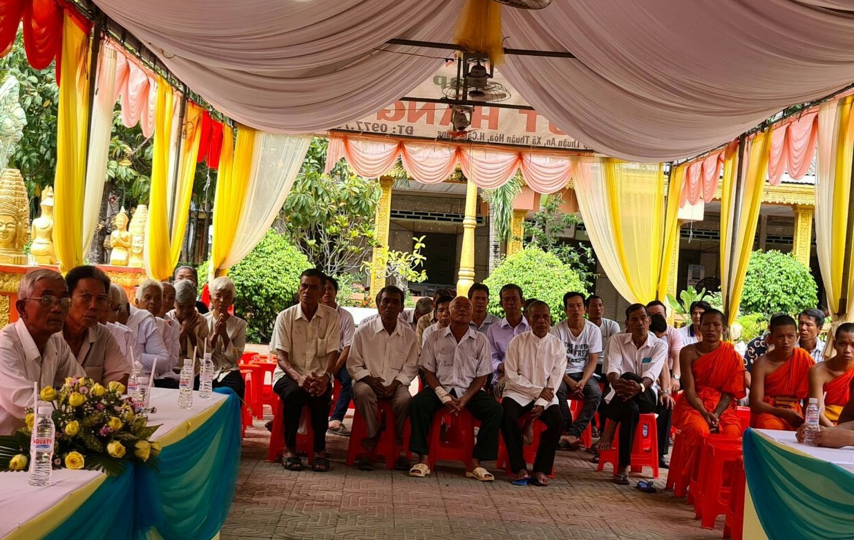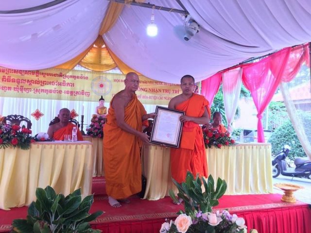 Theo đó, ĐĐ. Kim Thắng – Ủy viên Hội ĐKSSYN tỉnh, thay mặt tỉnh Hội tuyên đọc Quyết định của Mêkon PG nam tông Khmer tỉnh Trà Vinh công nhận Trụ trì chùa Pro Hut.