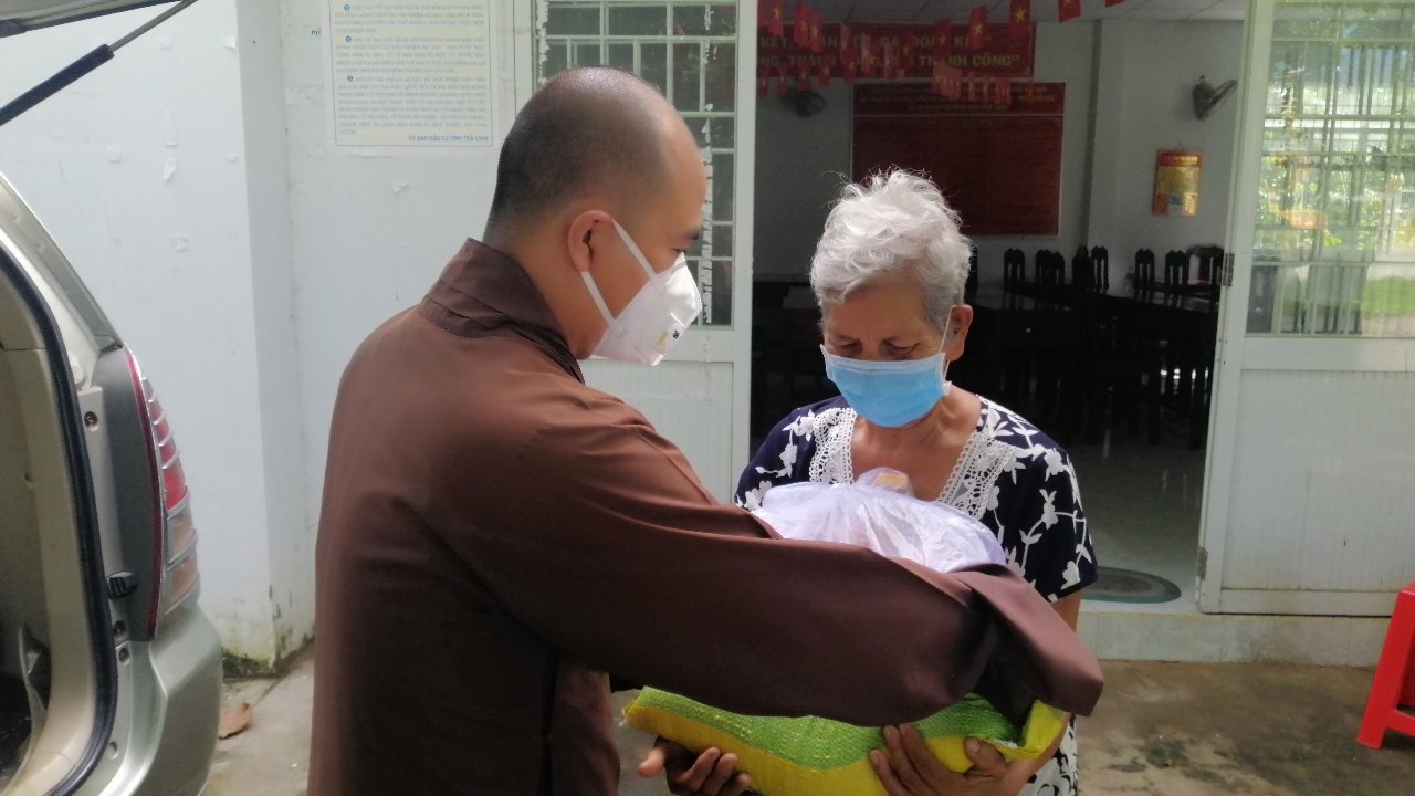 Trà Vinh: Chùa Long Khánh tặng 47 phần quà cho các hộ dân khu phong toả cách ly y tế và các hộ nghèo gặp khó khăn do dịch bệnh covid 19.