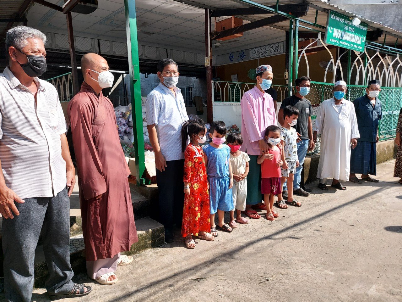 Dịp này, Đại đức Thích Huệ Chiếu ân cần thăm hỏi tình hình cuộc sống, chia sẻ, động viên với những khó khăn của đồng bào người Chăm nơi đây đang bị ảnh hưởng chung của đại dịch Covid 19 , đặc biệt là trong thời gian thực hiện giãn cách xã hội theo Chỉ thị 16 của Thủ tướng Chính phủ. Nhân đây, Đại đức gởi tặng mỗi hộ gia đình 1 phần quà gồm: gạo, mì gói, gia vị và một số nhu yếu phẩm thiết yếu trong cuộc sống với tổng kinh phí trên 28 triệu đồng.
