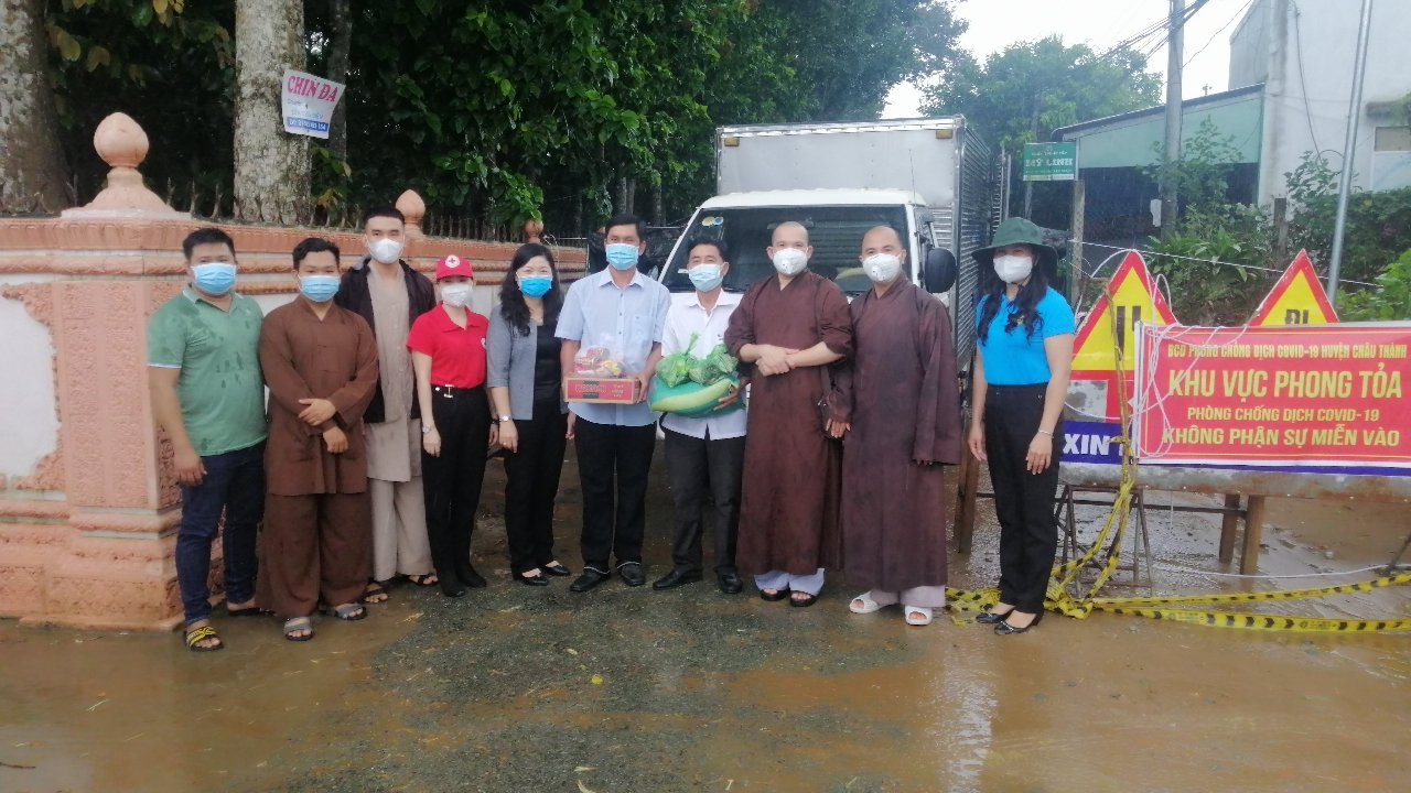 tại đây, phái đoàn đã đến thăm và tặng 104 phần quà cho 104 hộ dân tại 5 khu phong toả cách ly y tế thuộc ấp Hòa Thành, xã Hùng Hoà, huyện Tiểu Cần, ấp Chợ Trên, Xã Phước Hưng, huyện Trà Cú, ấp Hoà Lạc, xã Lương Hòa; ấp Bót Chếch, xã Lương Hòa và ấp Bình La, xã Lương Hòa,huyện Châu Thành tỉnh Trà Vinh