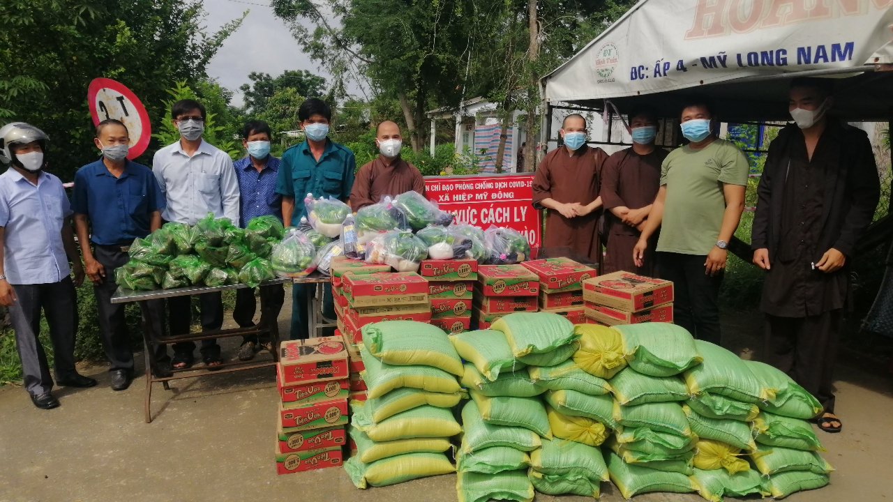 Phái đoàn đã tặng 100 phần quà cho các hộ dân và lực lượng tham gia làm nhiệm vụ trực chốt tại 6 khu phong toả cách ly y tế trên địa bàn Huyện Cầu Ngang (Ấp Long Hanh, xã Long Sơn; Ấp Rạch; ấp Cái Già Bến; ấp Cái Già Trên thuộc xã Hiệp Mỹ Đông; ấp Nhứt B xã Mỹ Long Nam và ấp Mỹ Cẩm B xã Mỹ Long Hoà)