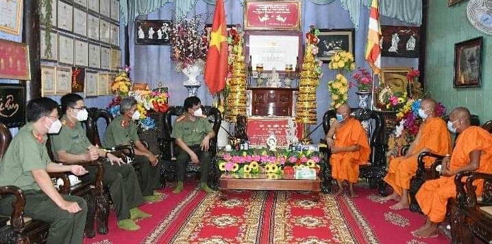 Tại đây, Giám đốc Công an tỉnh đã ghi nhận, đánh giá cao những đóng góp của các vị Hòa thượng, thượng tọa, chư Tăng và bà con Phật tử trong phong trào toàn dân tham gia bảo vệ an ninh Tổ quốc, giữ gìn an ninh trật tự, nhất là trong công tác phòng, chống dịch bệnh Covid-19. Mong rằng, Hòa thượng Thạch Sok Xane tiếp tục vận động các vị chư Tăng, bà con Phật tử phối hợp cùng với lực lượng Công an phòng ngừa, đấu tranh với các loại tội phạm, ngăn chặn, kiểm soát dịch bệnh Covid-19.