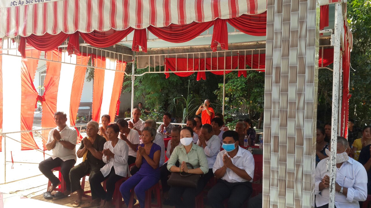 Về phía chính quyền có sự hiện diện của Bà Phương Thị Thúy Hảo – Ủy viên Thường trực UBMTTQVN huyện Cầu Ngang, Ông Sơn Sa Rêne – Chủ tịch UBMTTQVN xã Trường Thọ, Ông Lê Tấn Tài – Bí thư Chi bộ ấp Sóc Cụt, cùng bà con đồng tham dự.