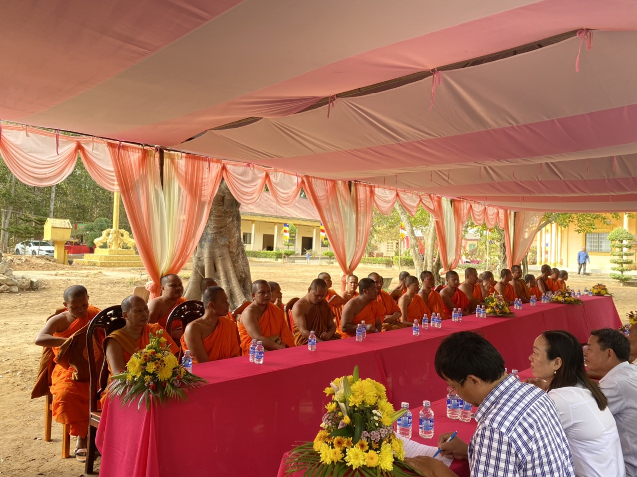 Buổi lễ khép lại với lời cảm tạ của TT.Thạch Rây – Chủ tịch Hội ĐKSSYN huyện đến chư Tôn đức Giáo phẩm, cùng quý lãnh đạo các ban ngành và bà con Phật tử đã về tham dự góp phần trang nghiêm ngôi Tam bảo.