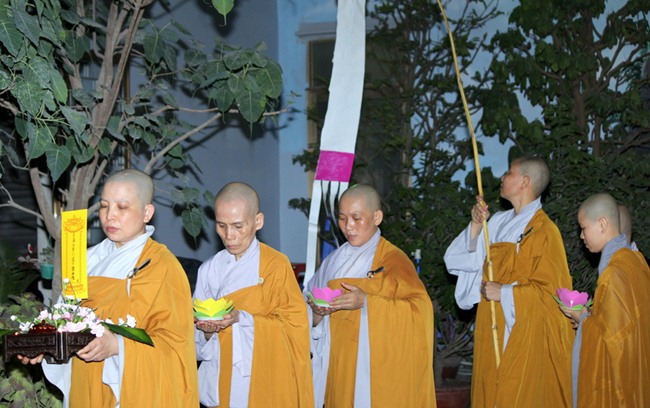 Tiếp theo, Ni chúng và phật tử của Bổn tự trì tụng kinh Bổn Môn Pháp Hoa, tụng kinh Phổ Hiền Hạnh Nguyện, tụng kinh Vô Lượng Thọ – niệm Phật. Và vào lúc 17h00’ cùng ngày là Lễ phóng liên đăng – thuyết linh do ĐĐ Thích Minh Như làm Chủ sám. Trong không khí tịch lặng trang nghiêm, Chư hương linh ký tự, vong linh vô danh, pháp giới cô hồn như được khai ngộ qua những lời dạy của Đại đức Sám chủ màsiêu sanh thoát hóa.