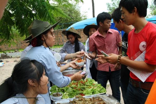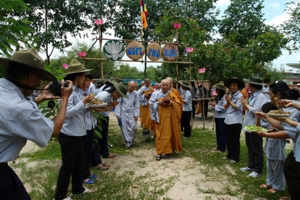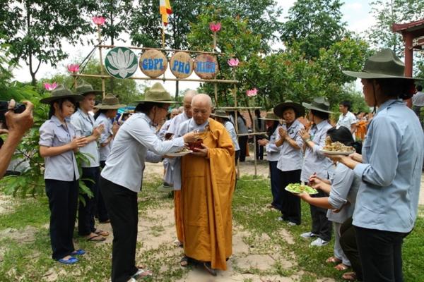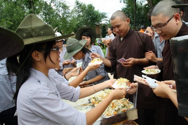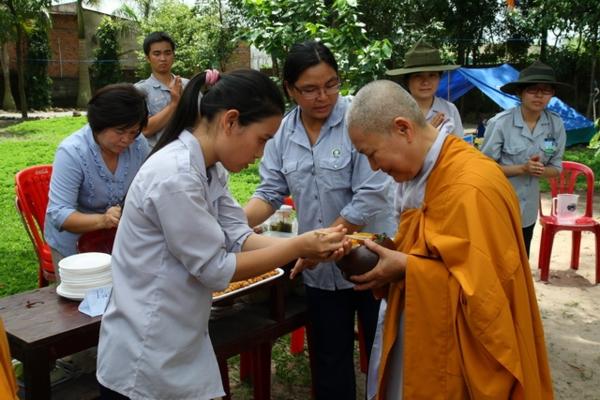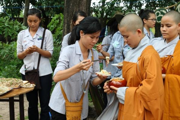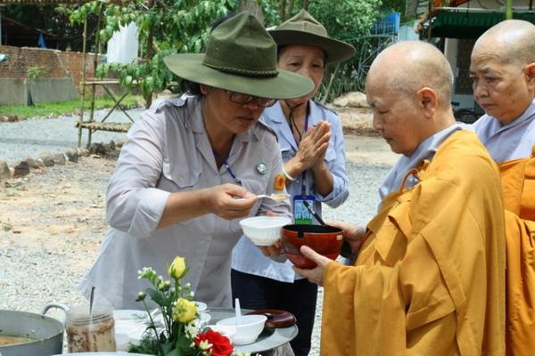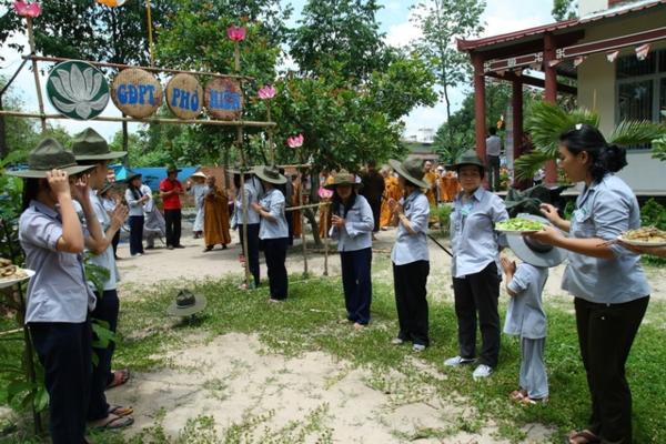 Phiên chợ quê hương được quý thầy cô trong BTC tái hiện lại khung cảnh đức Phật đi khất thực thuở xưa tại Ấn Độ. Các bạn trẻ là những vị đại thí chủ, sẽ dâng những món ăn sớt vào bát cho chư Tăng. Mục đích để các bạn trẻ gieo duyên lành với Phật, với Pháp, với chư Tăng. Phước báu từ sự cúng dường này mà ngày thêm tăng trưởng.