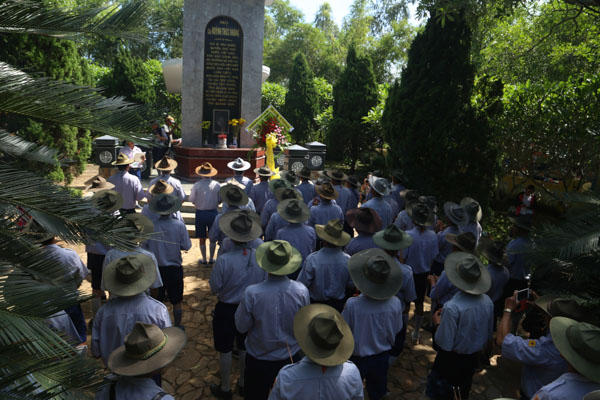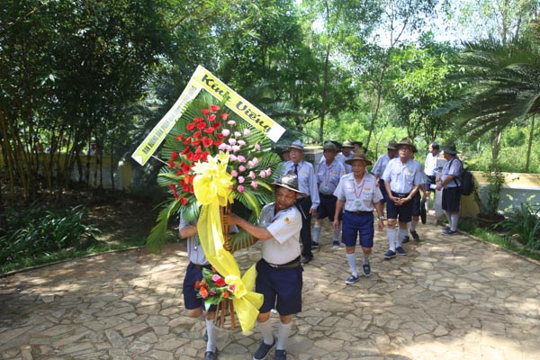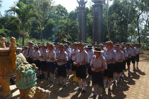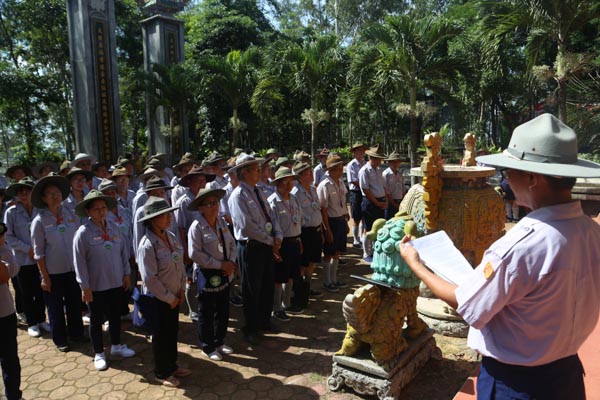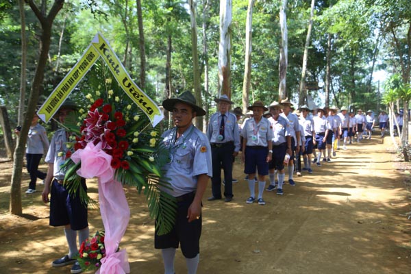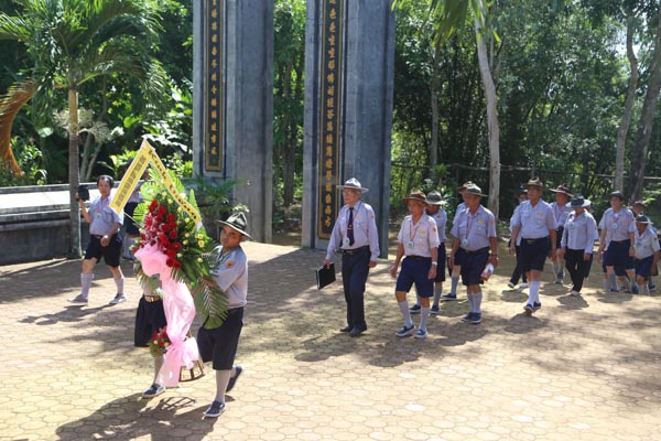 Cũng trong sáng nay, Ban quản trại cũng đã tổ chức phái đoàn đến đặt vòng hoa tưởng niệm và viếng hương tháp Tổ chùa Thiên Ấn và lăng mộ nhà chí sĩ yêu nước Huỳnh Thúc Kháng. BHD Phân ban GĐPT Quang Ngãi cũng đã rất chu đáo khi bố trí Huynh trưởng giới thiệu sơ lượt tiểu sử của Tổ Thiên Ấn và cụ Huỳnh Thúc Kháng để đoàn được tường tận hơn.