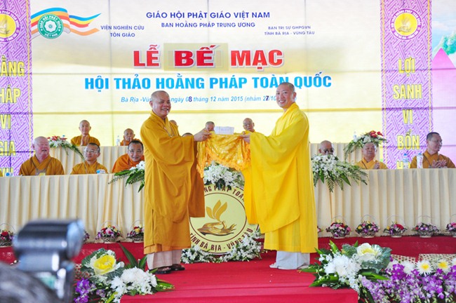 Đặc biệt, HT Thích Tấn Đạt, thay mặt Ban Hoằng pháp TƯ, Ban Hoằng pháp các tỉnh thành trong cả nước trao tặng cho đơn vị đăng cai tổ chức hội thảo (Ban Trị sự GHPGVN tỉnh BRVT) 500 triệu đồng.