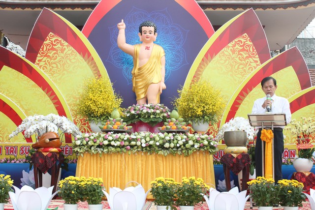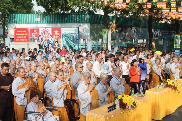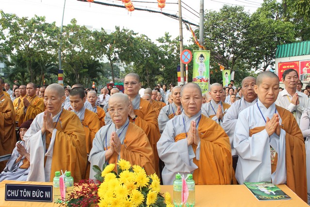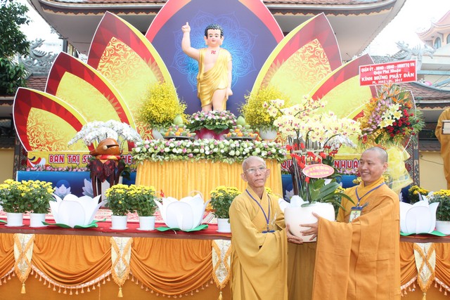 Trong giây phút trang nghiêm, HT. HT.Thích Huệ Minh – UVTT.HĐTS.GHPGVN – PTB nghi lễ TW, chứng minh BTSPG.Q.Phú Nhuận tuyên đọc thông của Đức Pháp Chủ GHPGVN chào mừng đại lễ PD.2561 – DL.2017 gửi đến toàn thể Tăng Ni Phật tử trong và ngoài nước. TT.Thích Minh Nhật đọc diễn văn PD của HT.Chủ tịch HĐTS.GHPGVN.