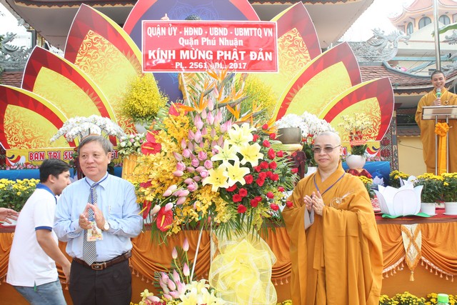 Quang lâm chứng minh: HT.Thích Huệ Trí – trưởng ban pháp chế TW.GHPGVN, HT.Thích Huệ Minh – UVTT.HĐTS.GHPGVN – PTB nghi lễ TW, chứng minh BTSPG.Q.Phú Nhuận. TT.Thích Minh Nhật – Trưởng ban PG.QPN (trưởng ban tổ chức PD.2561). TT.Thích Giác Trí – Phó trưởng ban thường trực BTSPG.QPN, chư tôn đức ban thường trực PG.QPN, Tăng Ni trụ trì đại diện các tự viện, tịnh thất, niệm Phật đường QPN.