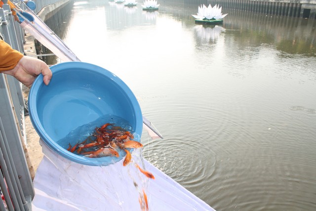 Nhân dịp PD.2561, chư tôn đức Tăng Ni Phật tử cử hành nghi thức thả cá phóng sinh tại bờ kênh Nhiêu Lộc.