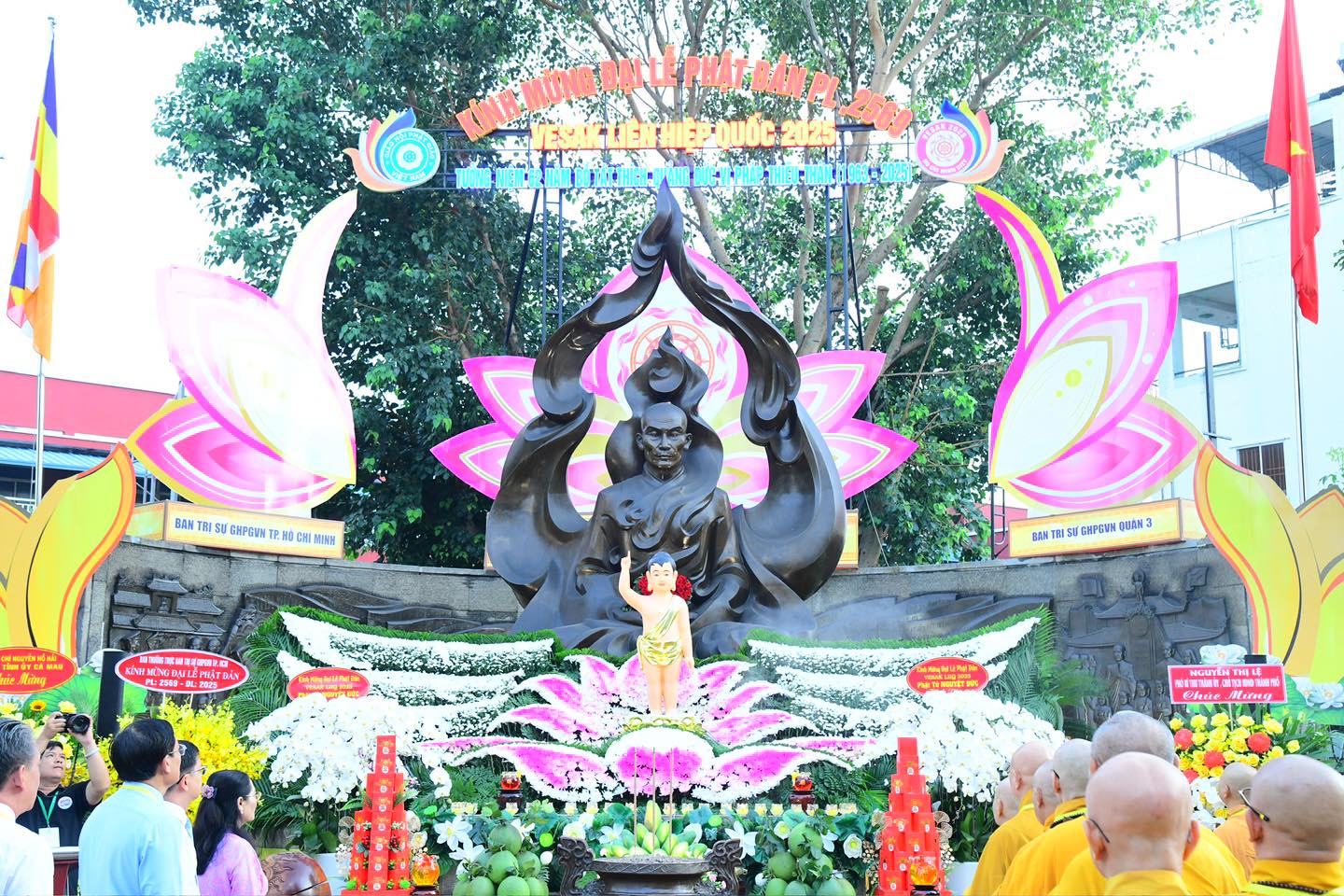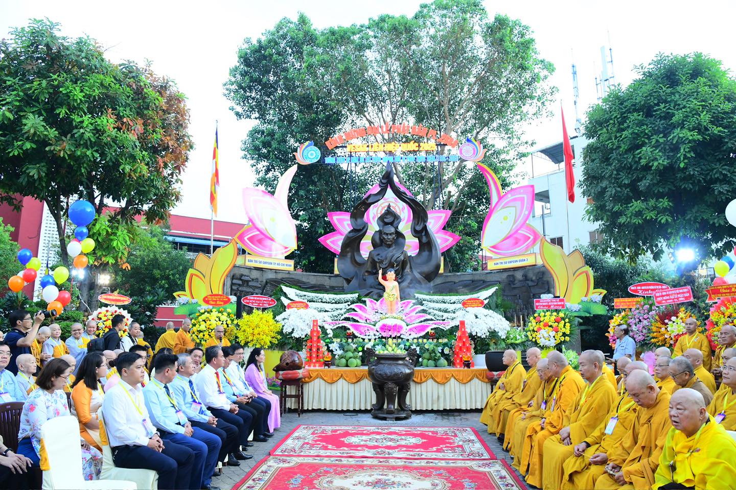 Buổi lễ diễn ra trang nghiêm, thanh tịnh với sự tham dự của đông đảo chư tôn đức HĐCM, HĐTS và Tăng Ni, Phật tử, cùng lãnh đạo Thành uỷ và các quan khách chính quyền TP.HCM, quận 3.