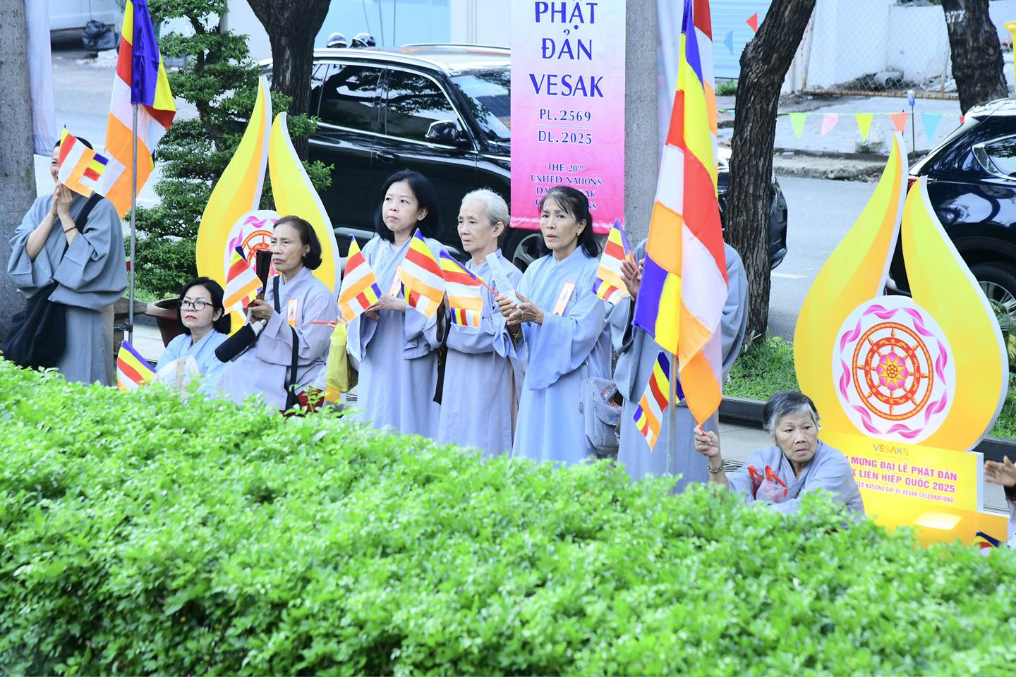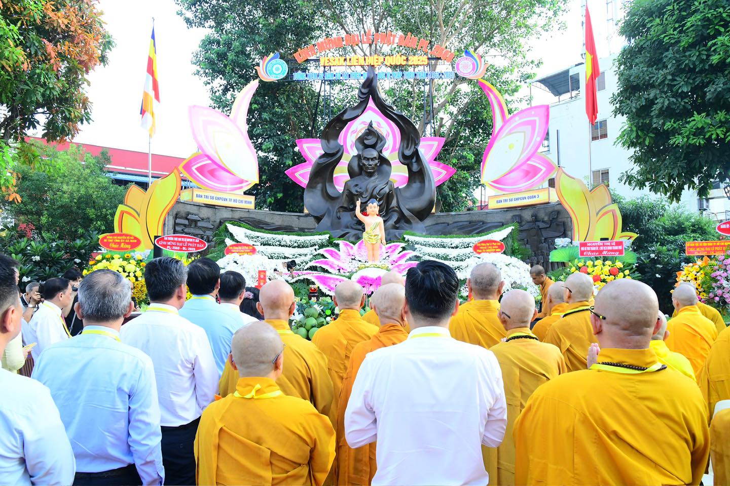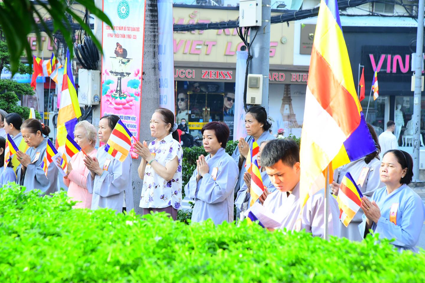 Tại buổi lễ, đại chúng trang nghiêm lắng nghe ba hồi chuông trống bát nhã cung đón thái tử Tất-Đạt-Đa đản sanh, niệm danh hiệu Phật Bổn sư cầu gia hộ, chào đạo kỳ và quốc kỳ; theo đó, HT.Thích Lệ Trang đọc Thông điệp Phật đản PL.2569 – DL.2025 của Đức Pháp chủ GHPGVN.