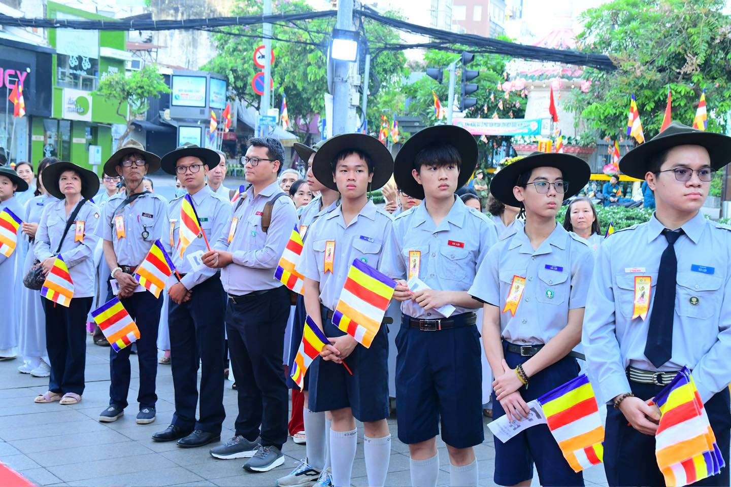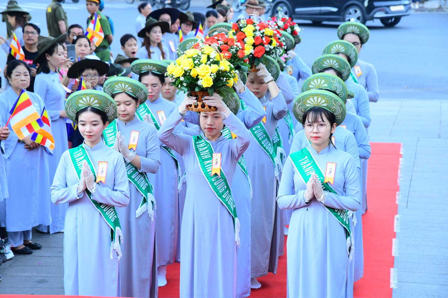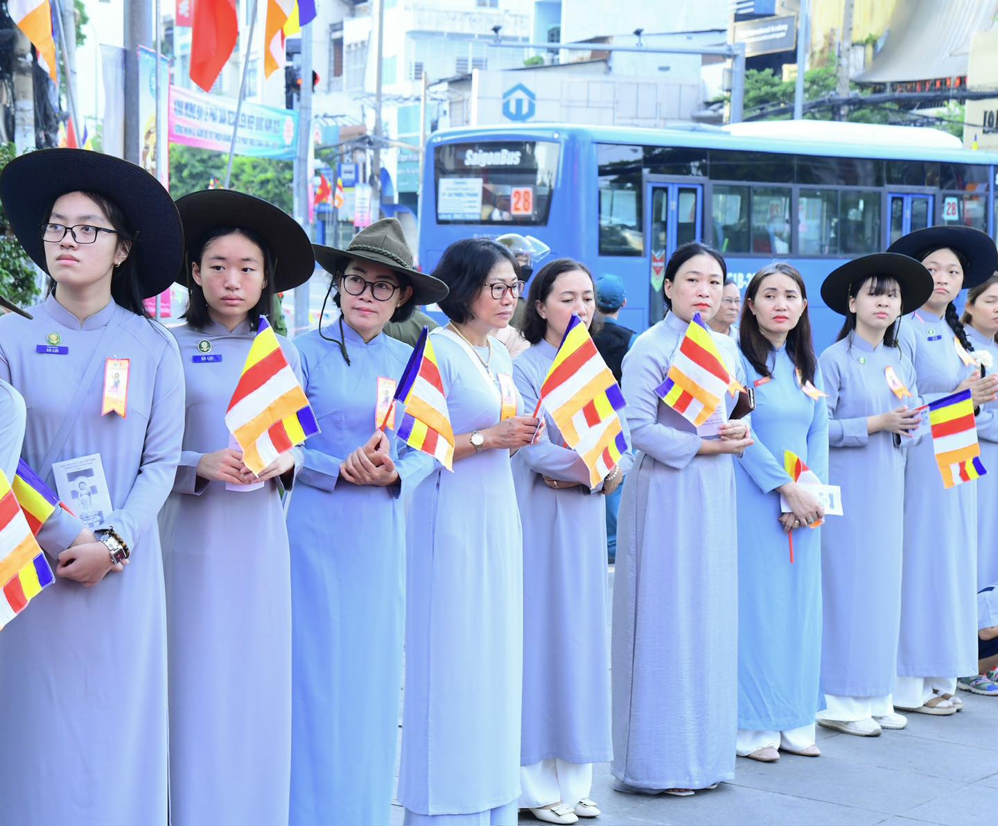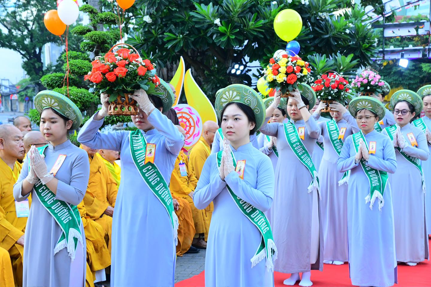 Tại buổi lễ, đại chúng trang nghiêm lắng nghe ba hồi chuông trống bát nhã cung đón thái tử Tất-Đạt-Đa đản sanh, niệm danh hiệu Phật Bổn sư cầu gia hộ, chào đạo kỳ và quốc kỳ; theo đó, HT.Thích Lệ Trang đọc Thông điệp Phật đản PL.2569 – DL.2025 của Đức Pháp chủ GHPGVN.