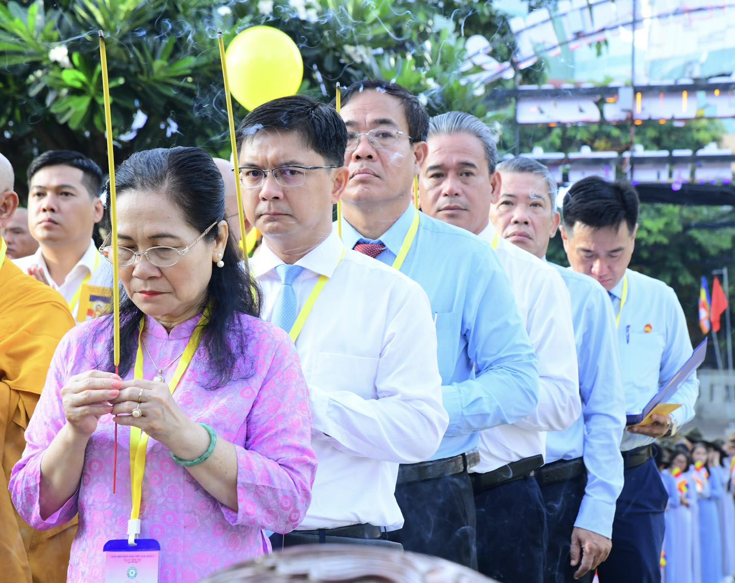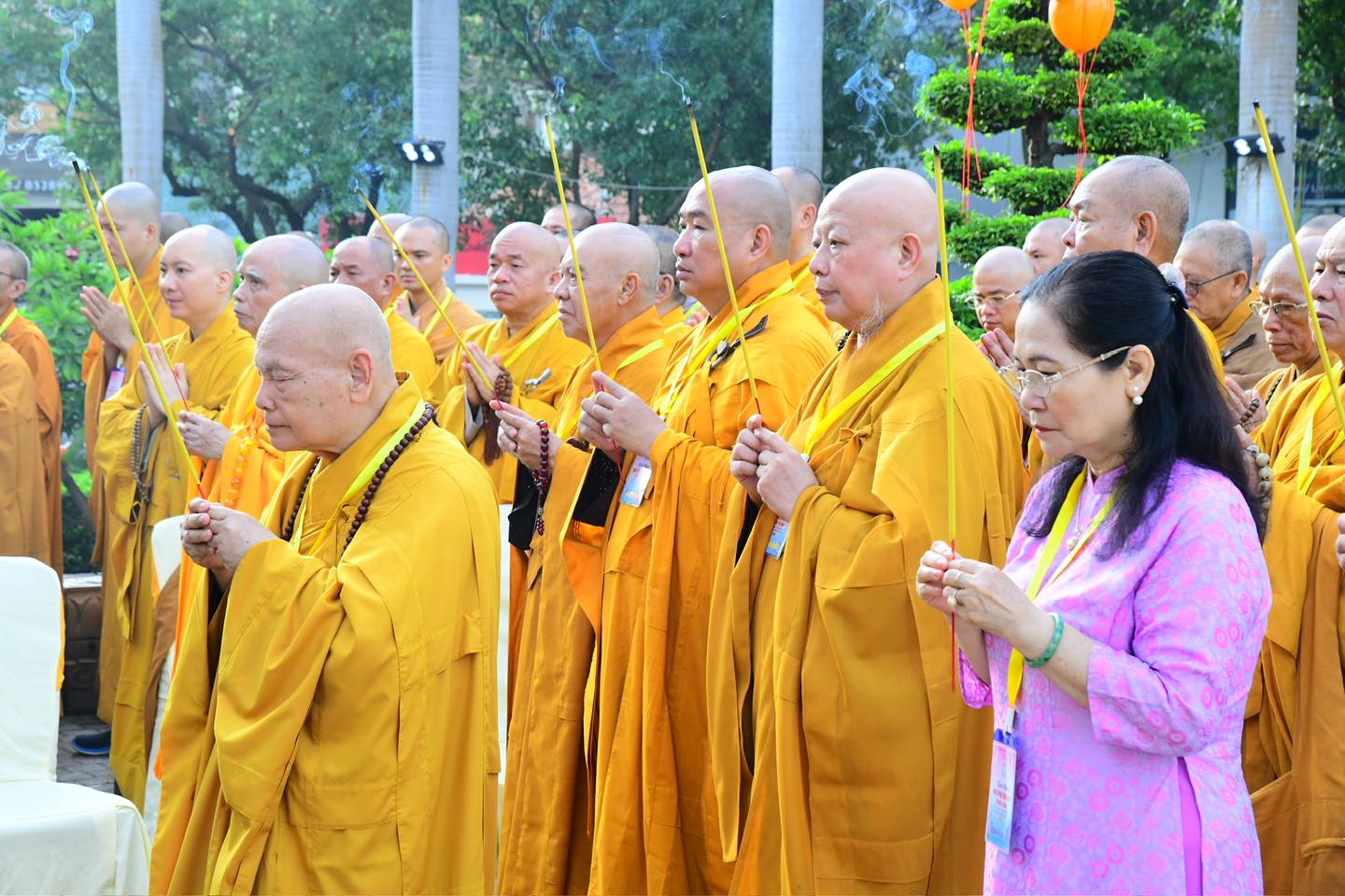 Thể hiện lòng thành kính và tri ân vô hạn đối với Đức Phật – đấng Giác ngộ vĩ đại đã khai sinh ra Phật giáo; Tăng Ni, Phật tử và các quan khách đã thành kính dâng hương cúng dường và đảnh lễ.
