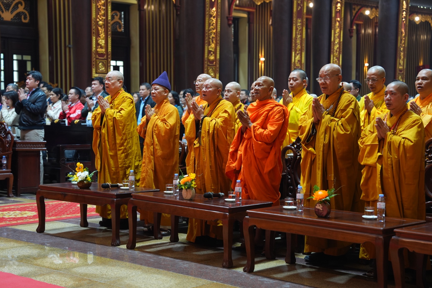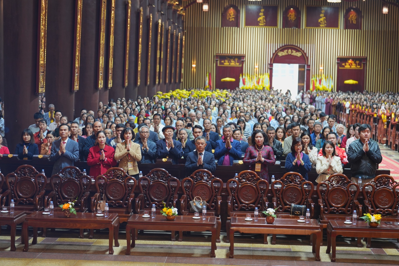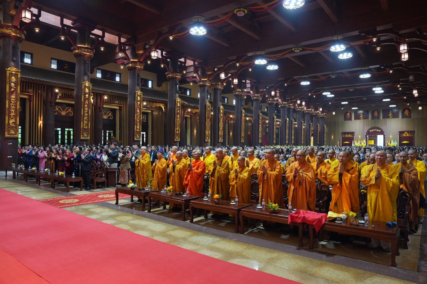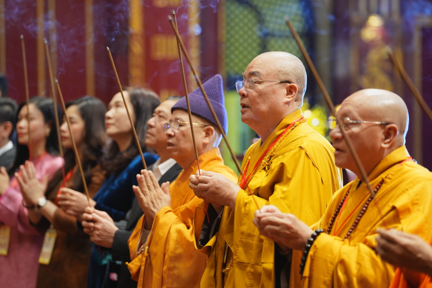 Tại lễ đài, nghi thức tâm linh được cử hành trong không khí trang nghiêm và thành kính, chư tôn giáo phẩm lãnh đạo Giáo hội cùng lãnh đạo địa phương dâng hương tưởng niệm, đồng nhất tâm tụng kinh và tuyên sớ cầu an. Toàn thể hội chúng đồng lòng nguyện cầu cho Phật pháp trường tồn, quốc thái dân an, đất nước phồn vinh, thái bình.