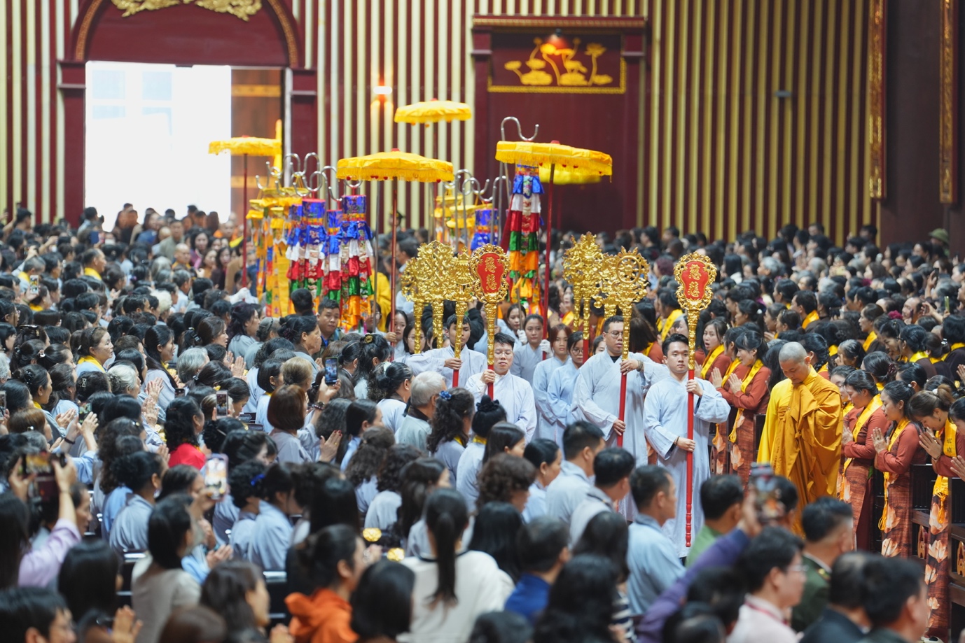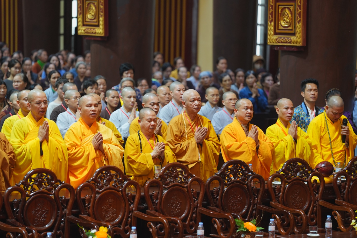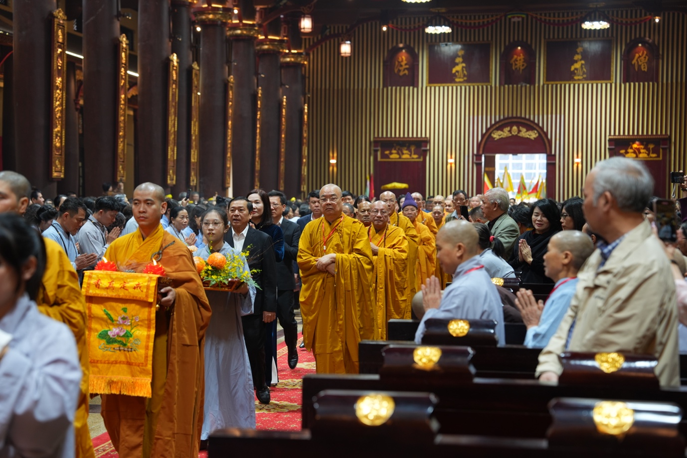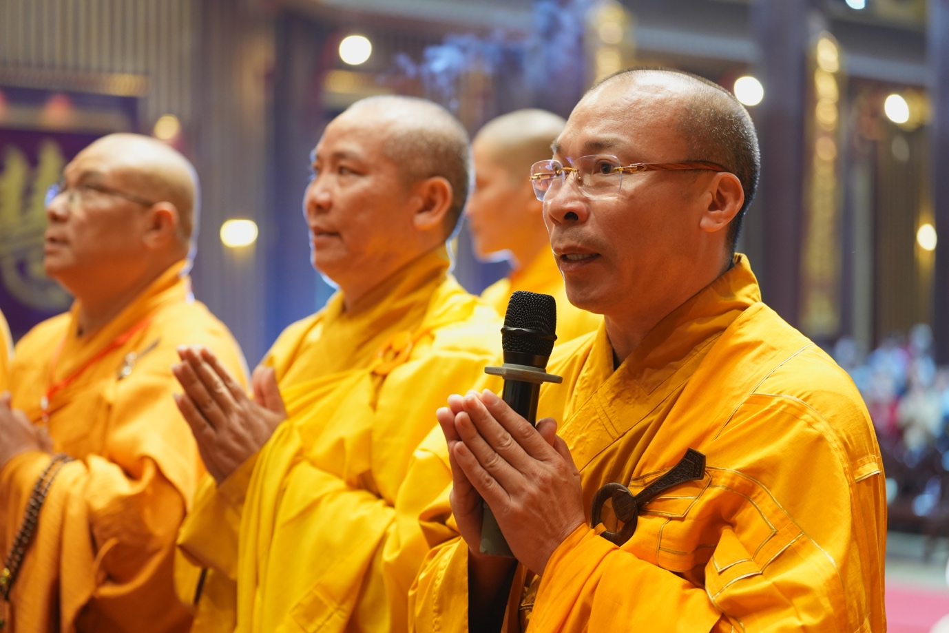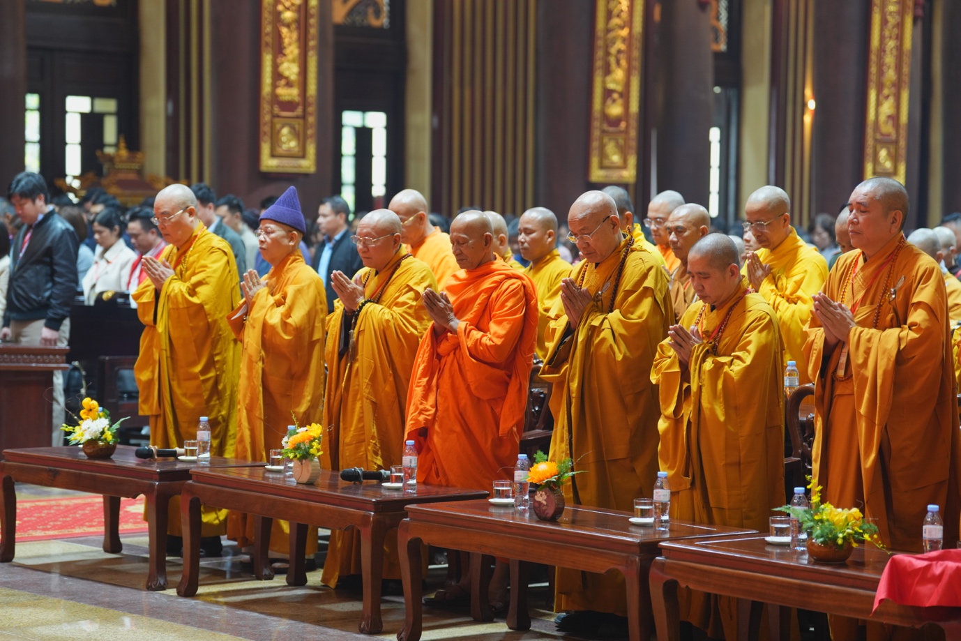 Tại lễ đài, nghi thức tâm linh được cử hành trong không khí trang nghiêm và thành kính, chư tôn giáo phẩm lãnh đạo Giáo hội cùng lãnh đạo địa phương dâng hương tưởng niệm, đồng nhất tâm tụng kinh và tuyên sớ cầu an. Toàn thể hội chúng đồng lòng nguyện cầu cho Phật pháp trường tồn, quốc thái dân an, đất nước phồn vinh, thái bình.