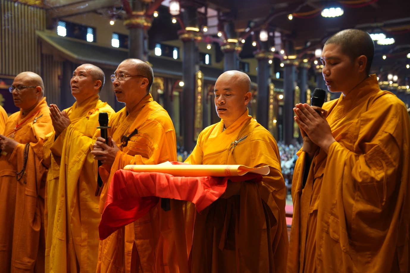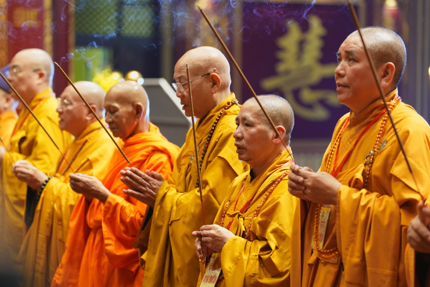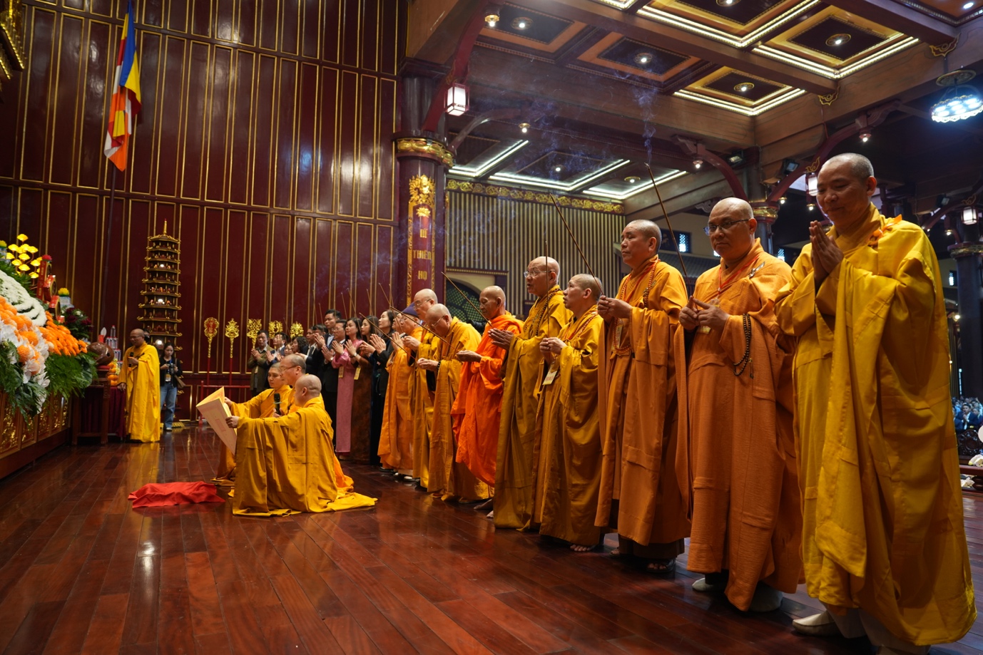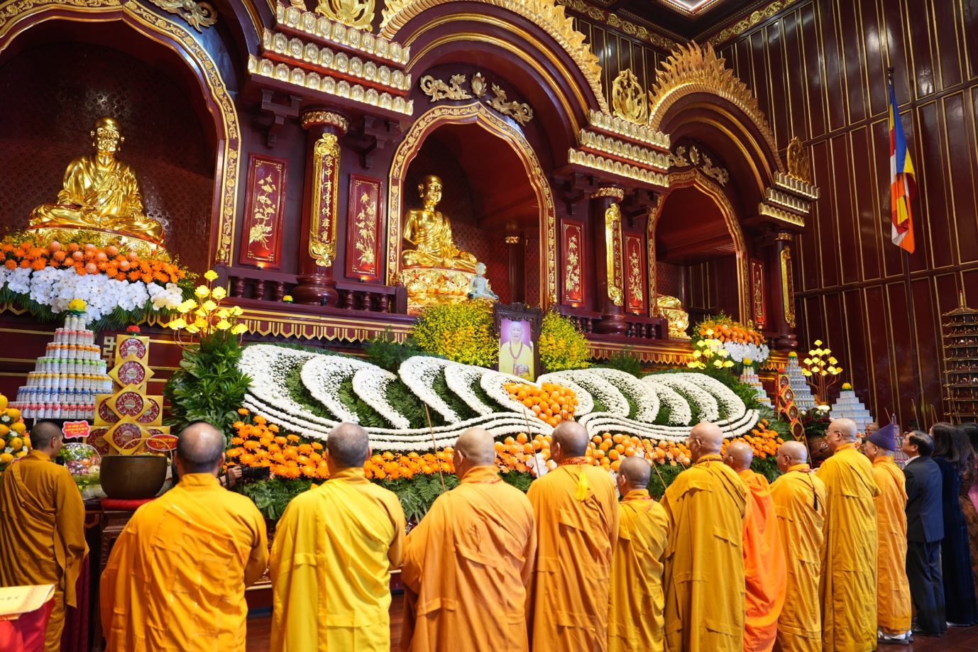 Tại lễ đài, nghi thức tâm linh được cử hành trong không khí trang nghiêm và thành kính, chư tôn giáo phẩm lãnh đạo Giáo hội cùng lãnh đạo địa phương dâng hương tưởng niệm, đồng nhất tâm tụng kinh và tuyên sớ cầu an. Toàn thể hội chúng đồng lòng nguyện cầu cho Phật pháp trường tồn, quốc thái dân an, đất nước phồn vinh, thái bình.