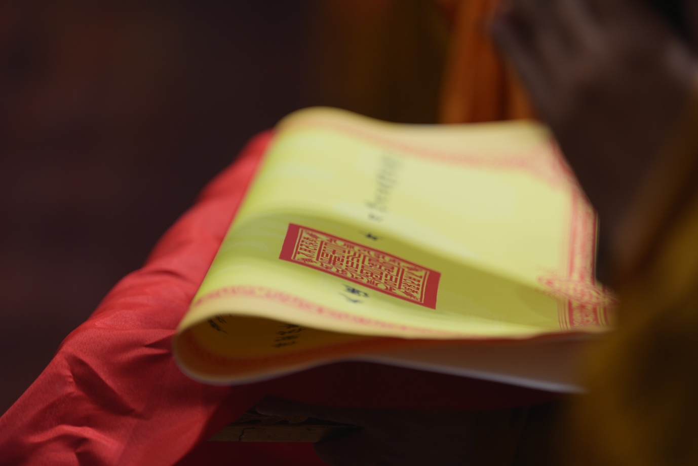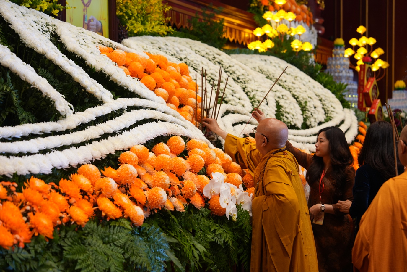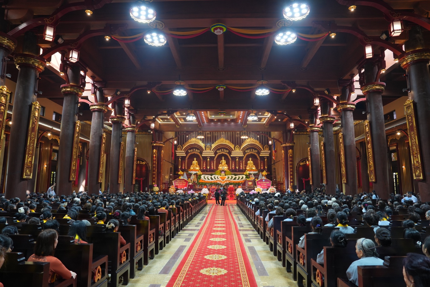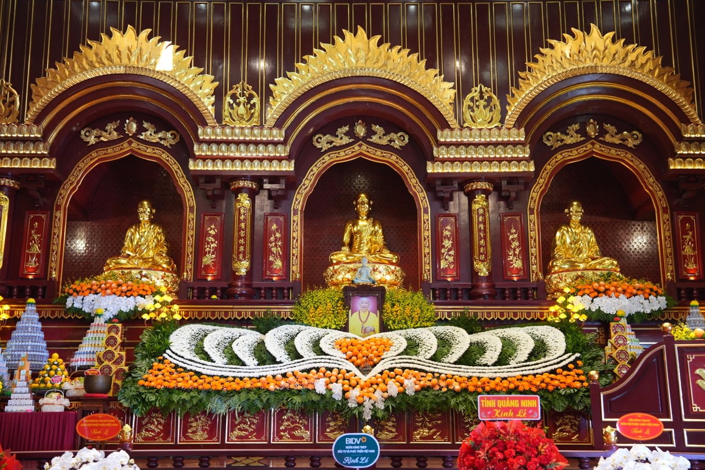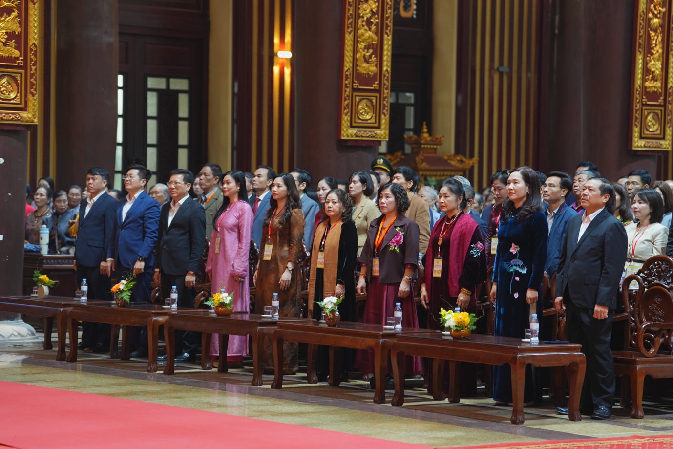 Tại lễ đài, nghi thức tâm linh được cử hành trong không khí trang nghiêm và thành kính, chư tôn giáo phẩm lãnh đạo Giáo hội cùng lãnh đạo địa phương dâng hương tưởng niệm, đồng nhất tâm tụng kinh và tuyên sớ cầu an. Toàn thể hội chúng đồng lòng nguyện cầu cho Phật pháp trường tồn, quốc thái dân an, đất nước phồn vinh, thái bình.