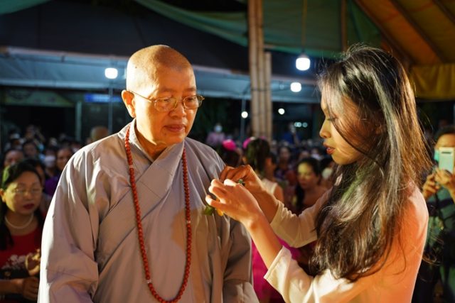 Trong niềm hoài cảm sâu lắng hướng về hai đấng sinh thành, đại chúng đã nghe Phật tử Huyền Trang đọc cảm niệm vu lan, để cùng nhớ lại những kí ức về hành trình gian nan từ khi mỗi người được sinh ra cho tới khi lớn lên, trưởng thành, trong sự vất vả hi sinh tận cùng của cha và mẹ. Để từ đó biết trân trọng những gian lao mà cha mẹ đã đánh đổi, để chúng ta được hiện diện trên đời và được như ngày hôm nay.