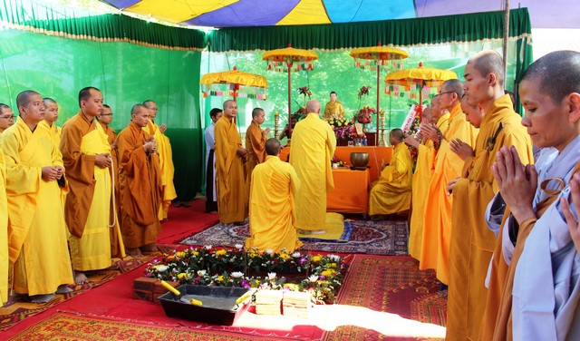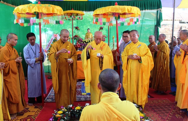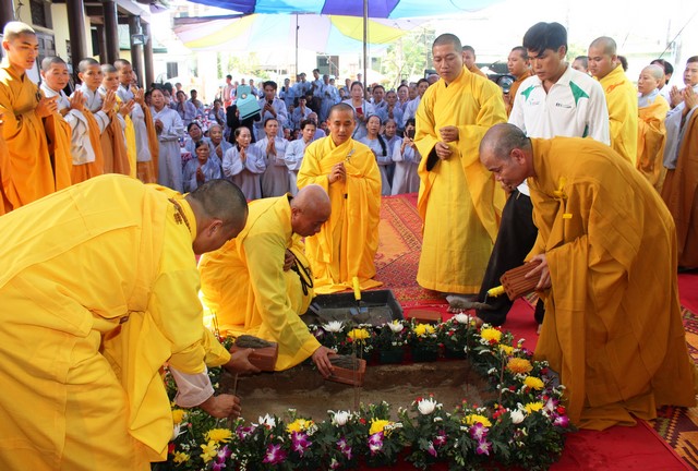 Tại buổi lễ, chư tôn đức đã niêm hương, sái tịnh và đặt viên đá đầu tiên khởi công trùng tu chùa Tam Hòa trong tiếng chú nguyện, niệm kinh của chư tôn đức chứng minh và Phật tử.