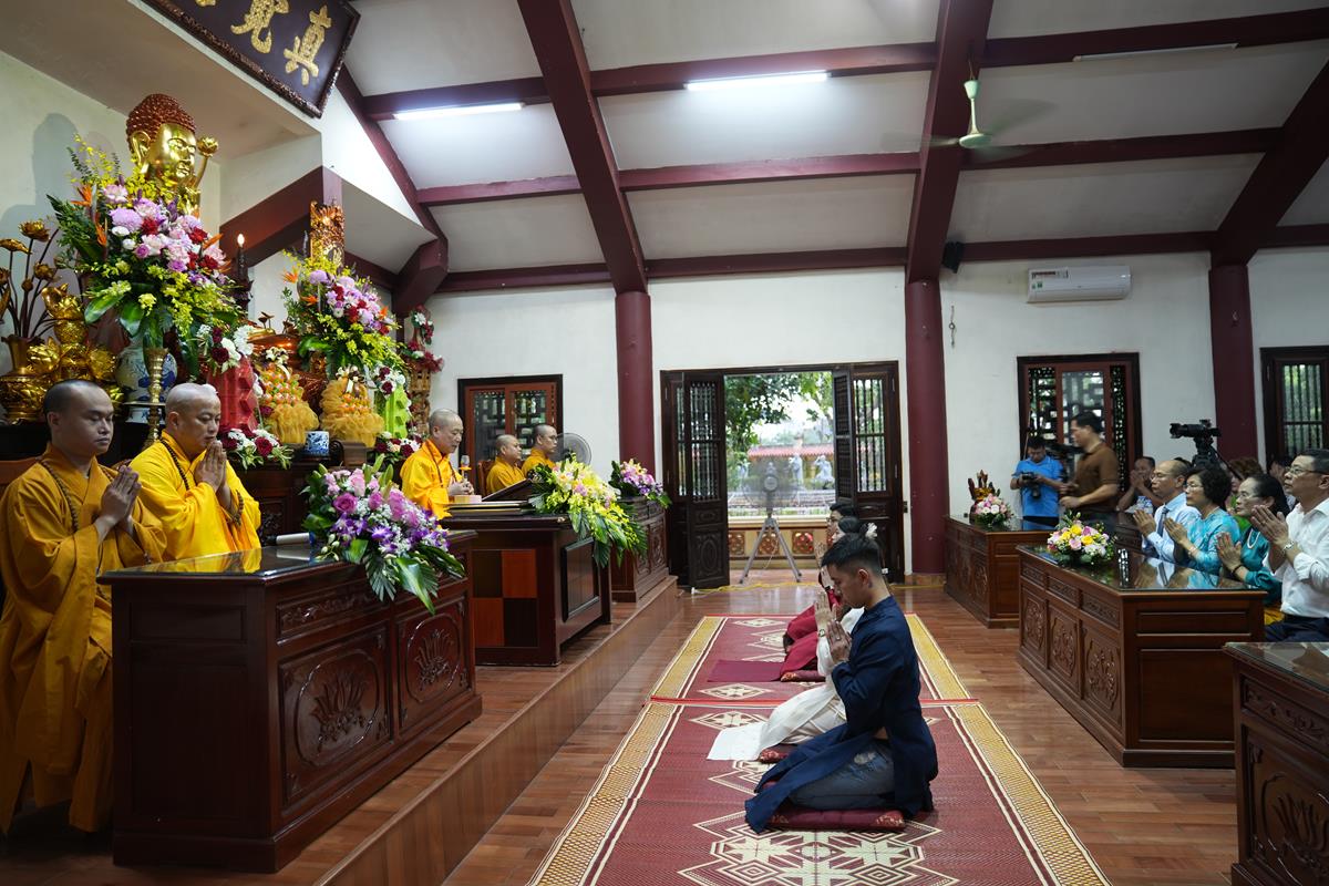 Trước khi chính thức cử hành nghi lễ Hằng thuận, hai đôi uyên ương đã được Hòa thượng trụ trì cùng chư Tăng cử hành nghi thức quy y Tam Bảo và truyền trao Ngũ Giới – những giới luật căn bản để làm kim chỉ nam cho đời sống hôn nhân hạnh phúc và bền vững.