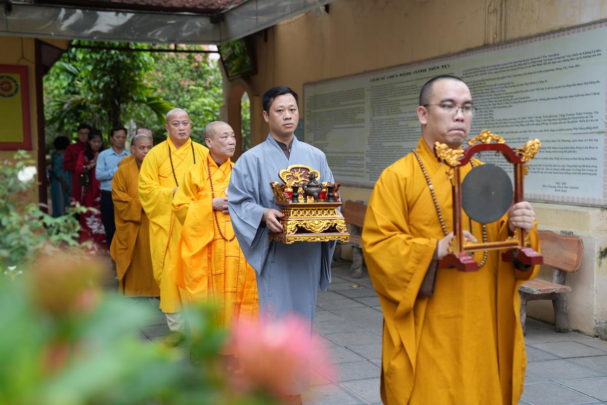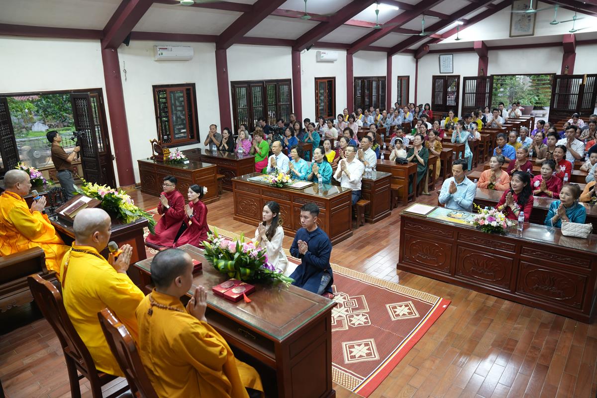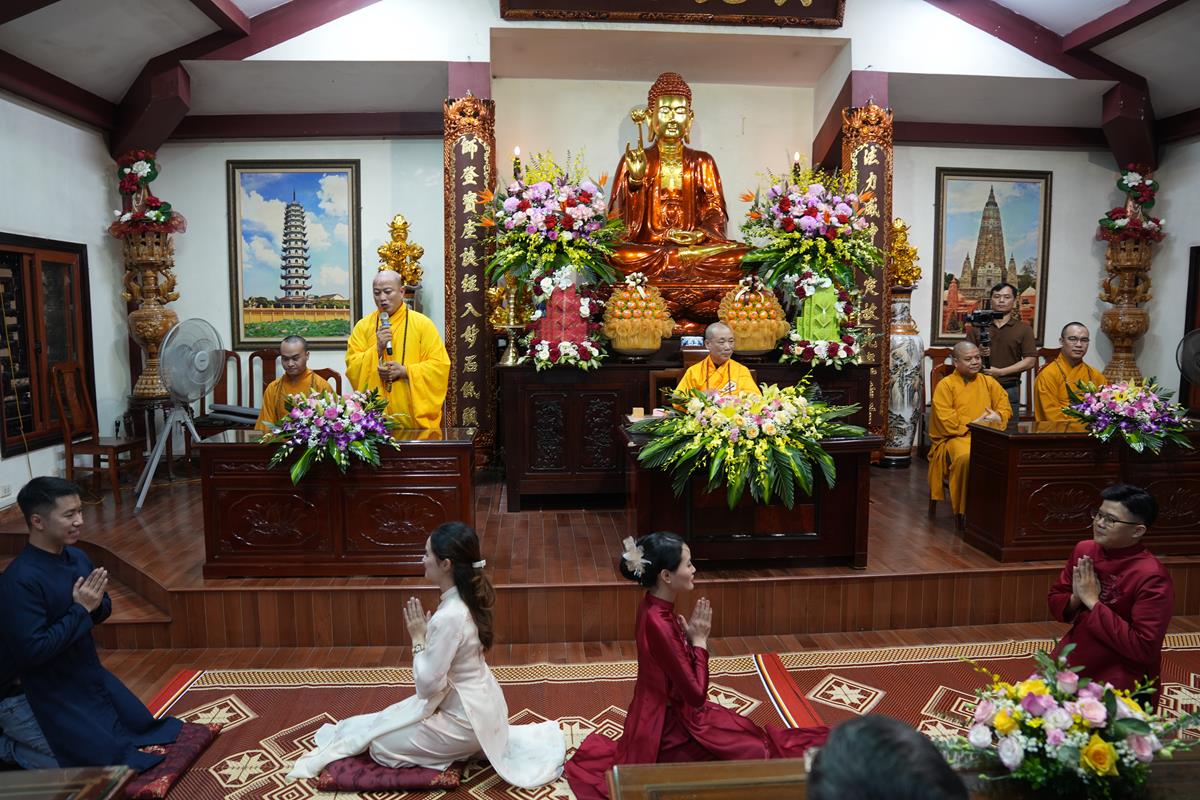 Buổi lễ được tổ chức dưới sự gia trì của mười phương chư Phật, sự chứng minh của Hòa thượng Thích Bảo Nghiêm – Phó Chủ tịch Hội đồng Trị sự, Trưởng Ban Hoằng pháp Trung ương GHPGVN, trụ trì chùa Bằng cùng chư tôn đức Tăng bản tự và sự hiện diện của đông đủ gia quyến hai bên.