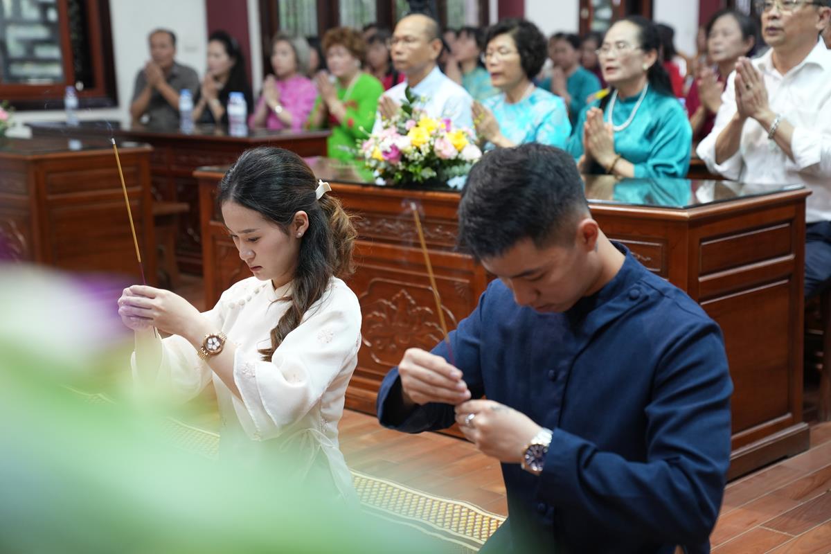 Buổi lễ khép lại trong không khí trang nghiêm, thiêng liêng và xúc động. Hòa thượng trụ trì cùng chư tôn đức và toàn thể đạo tràng đã nhất tâm chú nguyện, cầu chúc cho hai đôi bạn trẻ trăm năm hạnh phúc, bách niên giai lão, vợ chồng nghĩa nặng tình sâu.