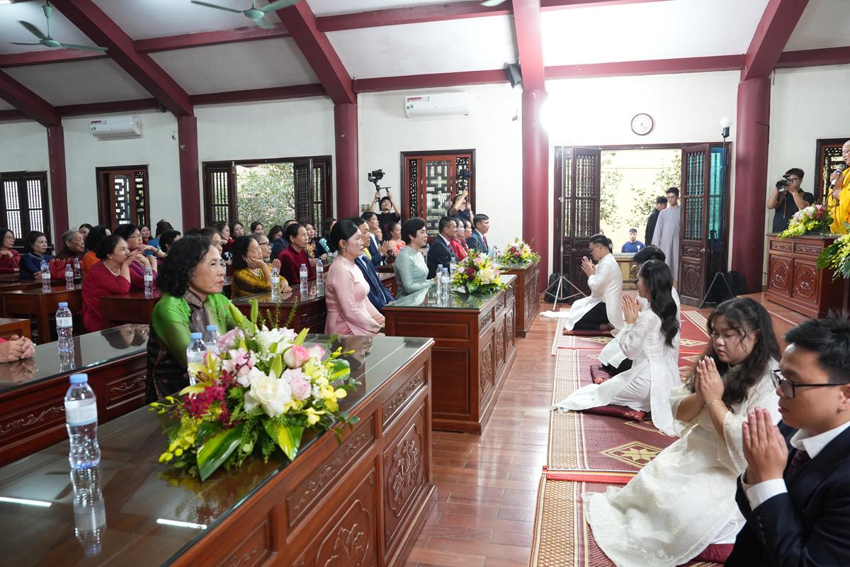 Buổi lễ được diễn ra trang nghiêm trong sự gia hộ của mười phương chư Phật, sự chứng minh của Hòa thượng trụ trì Thích Bảo Nghiêm – Phó chủ tịch HĐTS, Trưởng Ban hoằng pháp TƯ GHPGVN và chư tôn đức Tăng bản tự cùng sự tham dự của họ hàng hai bên gia đình của ba đôi bạn trẻ.