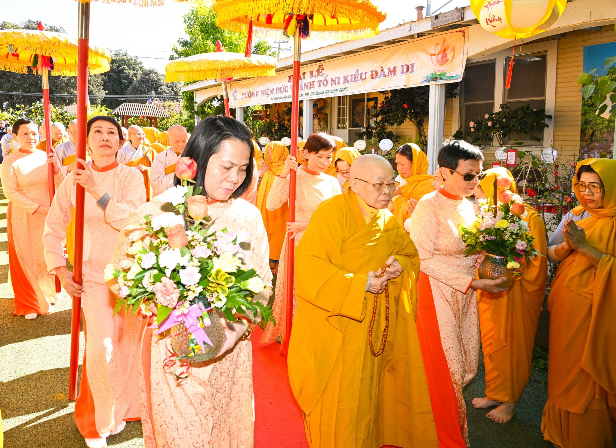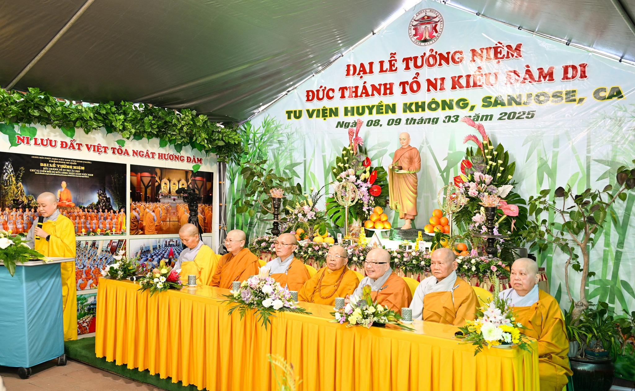 Vào lúc 02:00pm ngày 08/3/2025, Tu viện Huyền Không tọa lạc tại số 14335 Story Road, thành phố San Jose, tiểu bang California, Hoa Kỳ đã long trọng tổ chức Lễ khai mạc Đại lễ tưởng niệm Đức Thánh Tổ Ni Kiều Đàm Di.