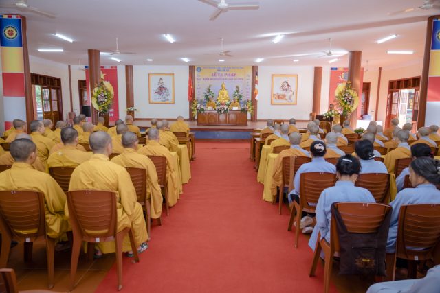 Nơi Giảng đường, Hòa thượng Chứng minh và Hòa thượng Đường chủ an vị pháp tòa, chư hành giả Tăng Ni đối trước tôn dung nhị Hòa thượng, tác bạch khánh tuế hạ lạp và thành tâm kính chúc các Ngài pháp thể khinh an, tuệ đăng thường chiếu, luôn là những bậc tòng lâm thạch trụ để tứ chúng đệ tử nương tựa tu học, sớm thành Phật đạo.