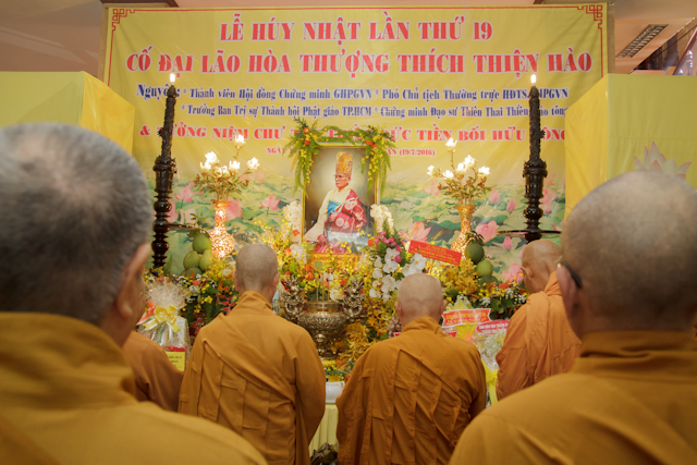 Đến tham dự và dâng hương tưởng niệm cố Đại lão Hòa thượng có: HT.Thích Trí Quảng – Phó Pháp chủ HĐCM – Trưởng BTS PG TP.HCM, HT.Thích Thiện Nhơn – Chủ tịch HĐTS, HT.Thích Giác Nhường, HT.Thích Viên Giác – đồng thành viên TT HĐCM, HT.Thích Thiện Pháp – Phó chủ tich TT HĐTS, HT.Thích Thiện Tâm, HT.Thích Thiện Tánh – đồng Phó Chủ tịch HĐTS, chư tôn đức giáo phẩm các ban, viện T.Ư GH, thường trực BTS PG TP.HCM, chư tôn đức Tăng, Ni 24 quận, huyện đồng tham dự.