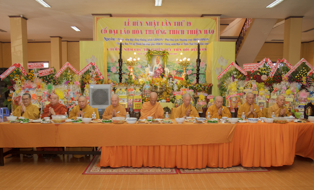 Trong không khí trang nghiêm, trầm hương quyện tỏa, đối trước giác linh cố Đại lão HT.Thích Thiện Hào. Chư tôn đức giáo phẩm đã thành kính dâng nén tâm hương, nhất tâm nguyện cầu Giác linh bậc Tồng Lâm Thạch Trụ cao đăng thượng phẩm, quả chứng vô sanh, tái hiện tà bà tiếp dẫn hậu lai.