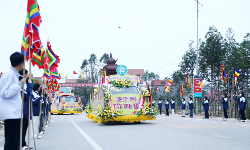 Dự lễ rước có đồng chí Mai Sơn, Phó Chủ tịch Thường trực UBND tỉnh, Trưởng Ban tổ chức Tuần VHDL và khai hội xuân Tây Yên Tử tỉnh Bắc Giang năm 2025, đại diện một số sở, ngành tỉnh, TP Bắc Giang cùng đông đảo tăng, ni, phật tử, người dân.