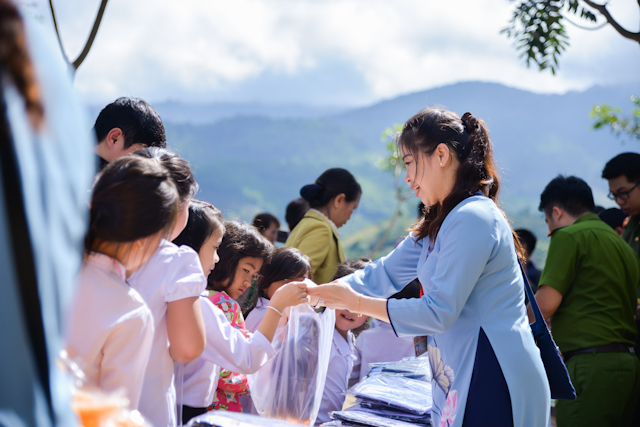 Tại đây, Đoàn đã buổi giao lưu vui vẻ cùng bé học sinh tiểu học người dân tộc H’Mông. Sau đó, Đoàn đã phát những phần quà Trung thu gồm ( Bánh kẹo, lồng đèn trung thu, đồng phục học sinh, tập vở,…), đổi lại đó là nhận được  những nụ cười ngây thơ của các em nhỏ khi đón phần quà Trung thu từ những người thiện nguyện phương xa, nhiêu đó cũng đủ làm ấm lòng mọi người trong đoàn. Thiết nghĩ, trong cuộc sống, nếu bớt được một nỗi khổ, thêm được một niềm vui cho mọi người thì cuộc sống của chúng ta vô cùng ý nghĩa.