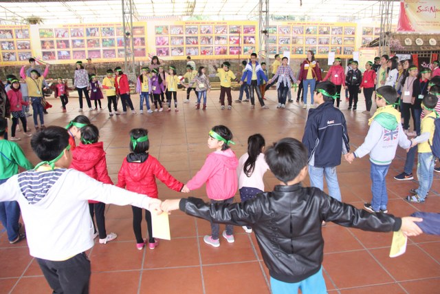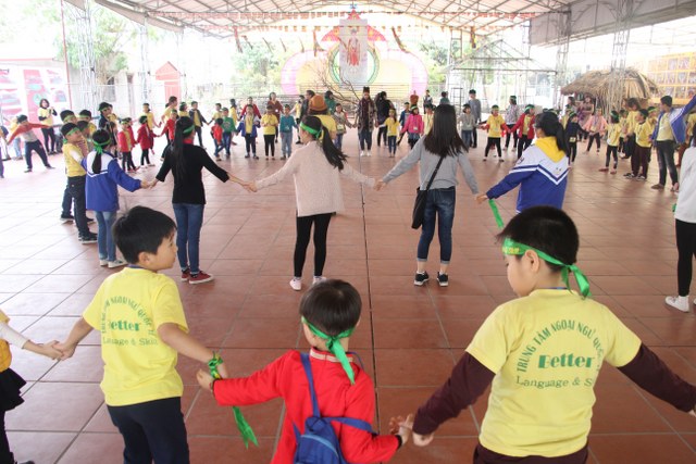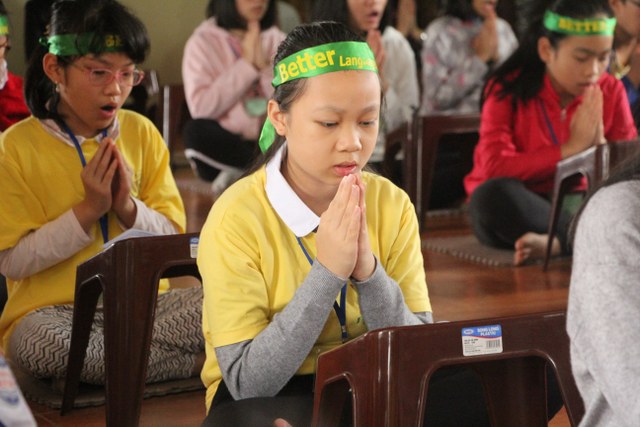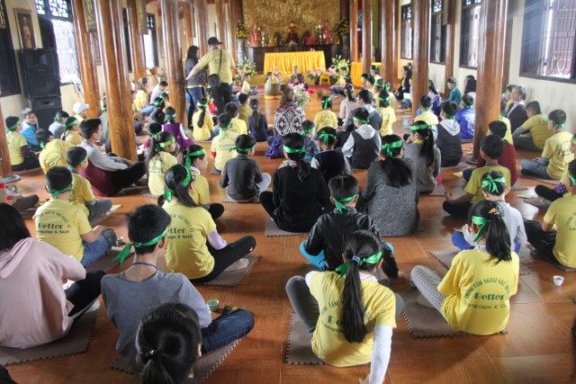 Việc kết hợp lời hát tiếng Anh và tiếng Việt của bài hát “Ta hạnh phúc liền giây phút này” làm các bạn thêm hứng thú. Bên cạnh đó, các bạn còn được quý Thầy hướng dẫn ăn cơm khất thực với các món ăn chay vì lòng từ bi không giết hại chúng sinh; tụng hai mươi lời nhớ ơn và bài học “Phép tắc người con”. Cuối ngày tu học, các bạn được các giáo viên tổ chức các trò chơi dân gian.