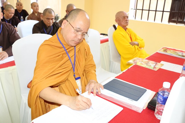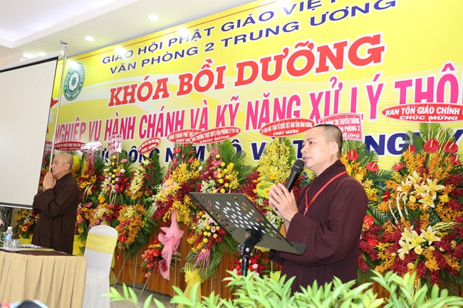 Tại buổi chia sẻ, Hòa thượng đã hướng dẫn quy trình viết văn bản hành chính bao gồm: Địa danh tỉnh thành, gửi cho ai, nội dung, tên gọi, số công văn, ngôn từ, cách trình bày, thể hiện sự tôn kính với các bậc trưởng thượng, trình bày ngắn gọn, nhấn mạnh đủ ý.