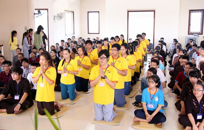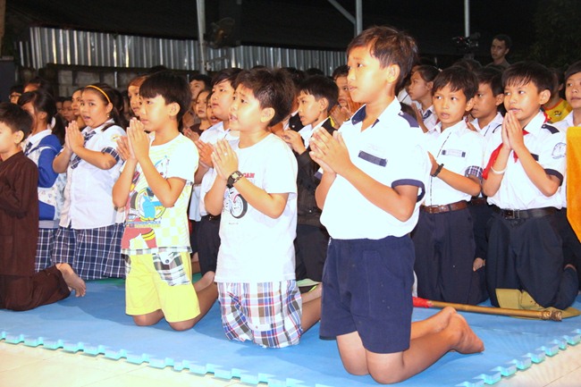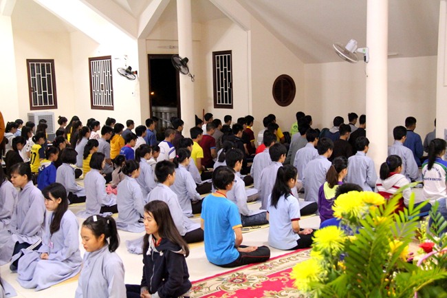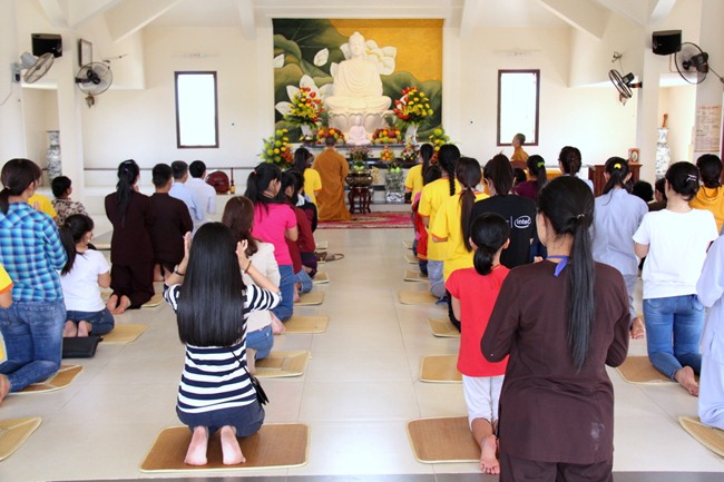 Trước khi vào chương trình chính thức của buổi lễ, tất cả mọi người được tham dự vào thời tụng kinh, ngồi thiền với sự hướng dẫn của quý Thầy trong không khí trang nghiêm, thanh tịnh.