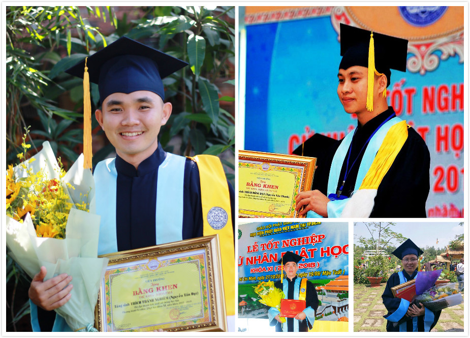 – ĐĐ. Thích Minh Tuệ – Lịch Sử Phật Giáo: Kết quả thủ khoa là một vinh dự lớn đối với chúng tôi. Khi hay tin mình thủ khoa chuyên ngành Lịch sử Phật giáo, chúng tôi không quá bất ngờ. Bởi lẽ, đó là thành quả xứng đáng trong suốt chặng đường tu học gần 4 năm tại Phật học Viện này.