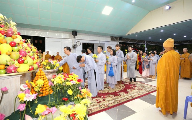 Sau cùng, đại lễ Phật thành đạo hoàn mãn bằng nghi thức toàn thể đại chúng tụng bài Sám Thành Đạo và dâng hoa cúng dường.