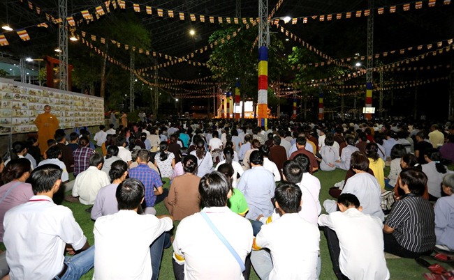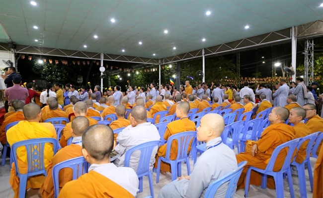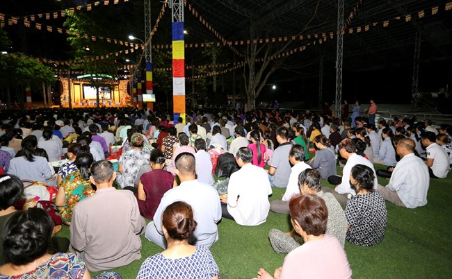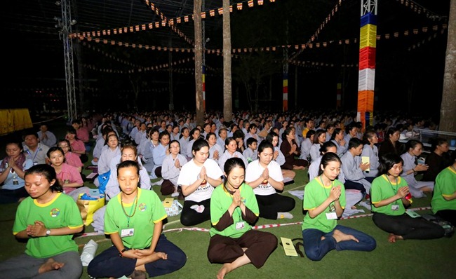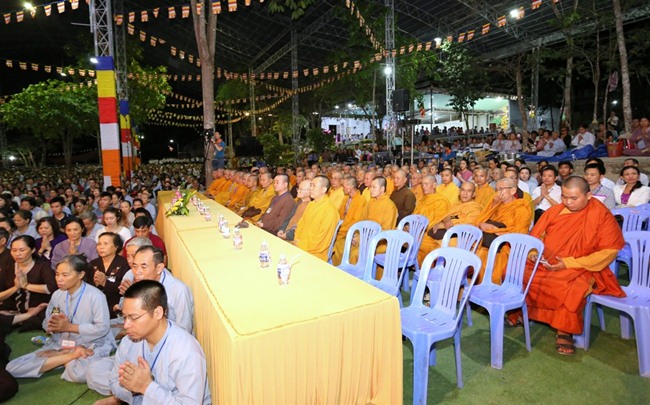Tiếp theo, đúng 18h30” cùng ngày, Đại lễ Phật thành đạo bắt đầu. Trong không khí trang nghiêm và thành kính nhất, ĐĐ.Thích Tánh Khoan đại diện cho BTC đọc lời khai mạc và hướng dẫn toàn thể phật tử ngồi thiền 30 phút.