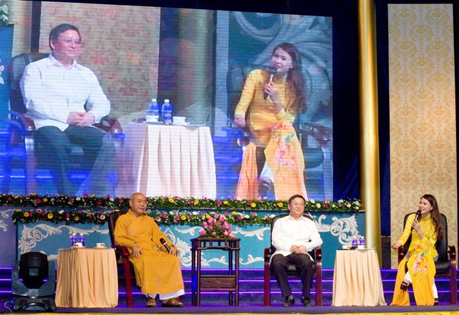 Đặc biệt vào lúc 14h00”, tại Lễ đài diễn ra buổi nói chuyện với các phật tử của vị khách mời là ông Bùi Hữu Dược – Vụ trưởng Vụ Phật giáo – Ban Tôn giáo Chính phủ, và MC Thu Quỳnh.