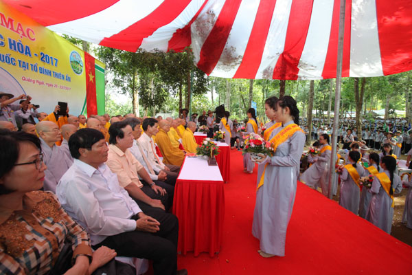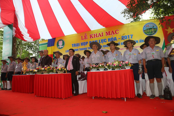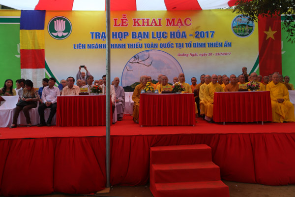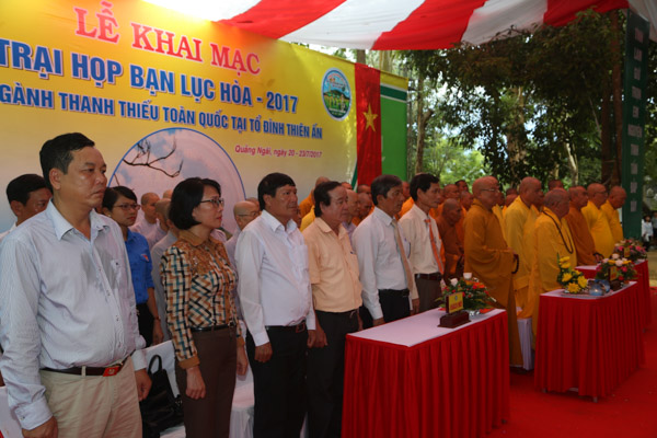 Tham dự lễ khai mạc còn có sự hiện diện của Htr cấp Dũng Thiện Điều Nguyễn Thắng Nhu – Ủy viên HĐTS GHPGVN, Trưởng ban Hướng dẫn PB GĐPT TƯ; Htr cấp Dũng Tâm Duệ Nguyễn Đức Châu – UV HĐTS GHPGVN, Phó Thường trực Ban HD PB GĐPT TƯ, các anh chị huynh trưởng cao niên, huynh trưởng BHD Phân ban GĐPT các tỉnh, thành trong cả nước và 6.000 huynh trưởng – đoàn sinh từ 35 GĐPT các tỉnh thành trên cả nước tham dự trại. Lãnh đạo chính quyền các cấp tỉnh Quảng Ngãi, TP.Quảng Ngãi cũng đến tham dự và chúc mừng.