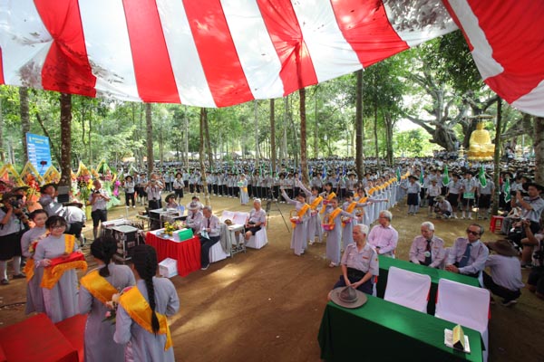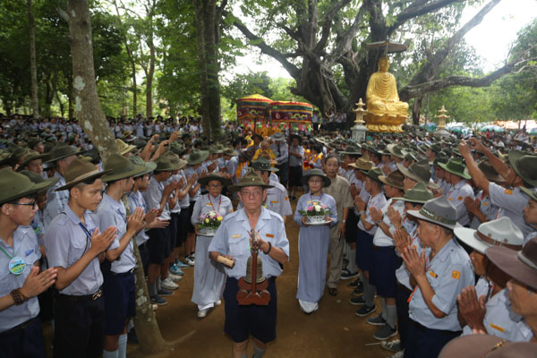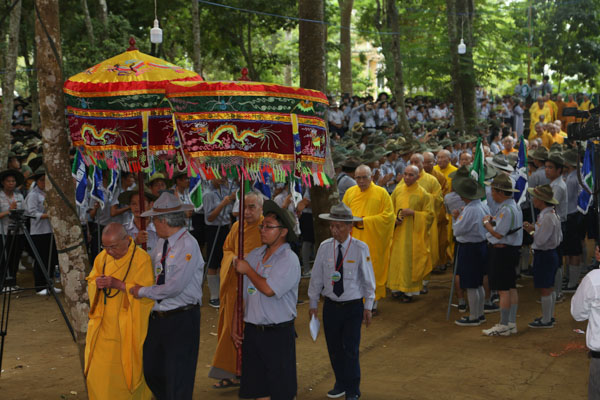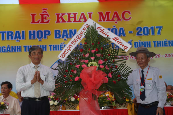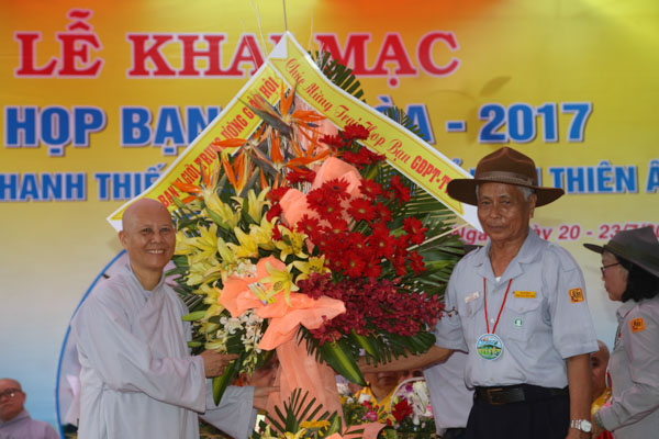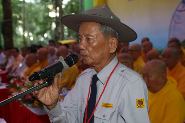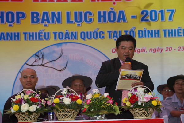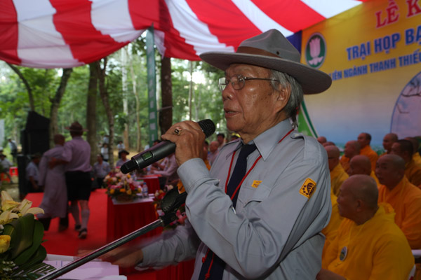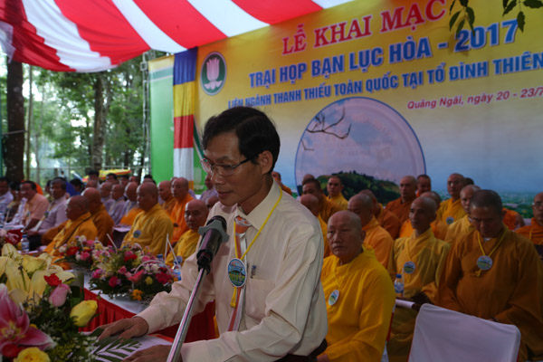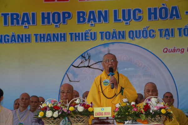 Tiếp theo là lời phát biểu của HT.Thích Hạnh Lạc – UV HĐTS GHPGVN, Trưởng BTS GHPGVN tỉnh Quảng Ngãi, lời phát biểu của đại diện lãnh đạo chính quyền tỉnh Quảng Ngãi và lời nhắn nhủ của huynh trưởng Thiện Điều – Nguyễn Thắng Nhu đối với trại.
