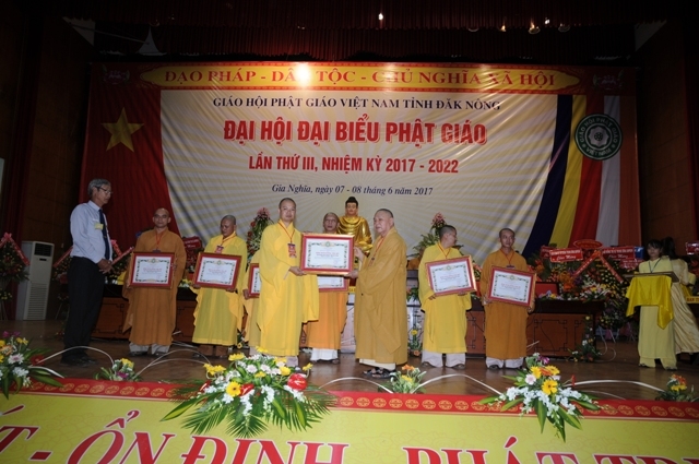 Nhân đại hội, Hội đồng Trị sự, Ủy ban Nhân dân, Ủy ban MTTQVN tỉnh đã tặng nhiều Bằng Tuyên dương Công đức, Bằng công đức, Bằng khen đến những tập thể, cá nhân có nhiều đóng góp tích cực cho công tác Phật sự tại tỉnh Đắk Nông thời gian 5 năm qua.