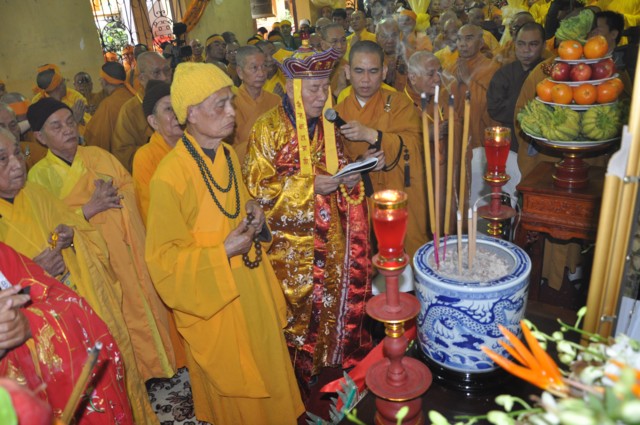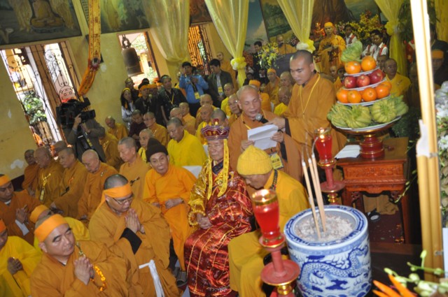 Lời tưởng niệm kết thúc: “Trong giây phút nghìn thu vĩnh biệt, trước linh đài khói hương quyện tỏa, chúng tôi thay mặt Hội đồng Chứng minh, Hội đồng Trị sự Giáo hội Phật giáo Việt Nam, Ban Trị sự các Tỉnh, Thành hội Phật giáo có đôi lời tưởng niệm để vĩnh biệt bậc chân nhân Đại sĩ sáng ngời gương đạo hạnh. Kính nguyện Giác linh Trưởng lão Hòa thượng bất vong nguyện lực, tái hiện đàm hoa, phát triển đạo vàng, quang vinh họ Thích; và xin đốt nén tâm hương cúng dường Giác linh Trưởng lão Hòa thượng để gọi là thể hiện mối tâm giao, tình Pháp lữ đời đời trong Chính pháp, xin hứa sẽ tiếp tục thực hiện những sự nghiệp mà Trưởng lão Hòa thượng còn để lại, nhất là làm cho ngôi nhà Giáo hội Phật giáo Việt Nam ngày càng phát triển vững mạnh trang nghiêm trong lòng dân tộc như tâm nguyện của Trưởng lão Hòa thượng lúc sinh tiền.”