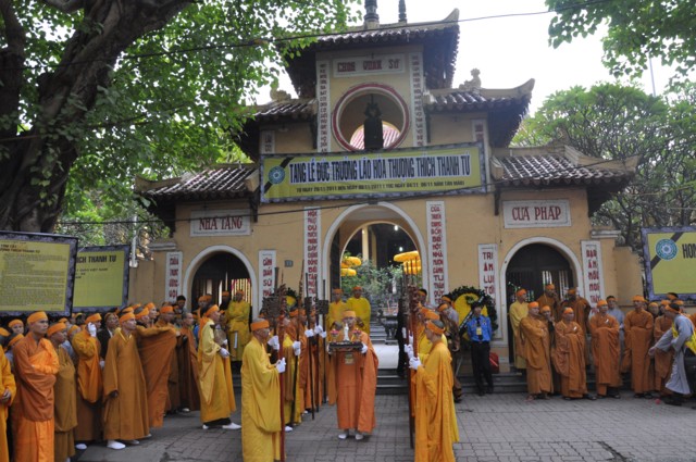 Kết lúc lễ truy điệu, TT. Thích Thanh Nhiễu thay mặt ban Lễ tang phát biểu cảm niệm, tri ân Tăng Ni, Phật tử, các vị lãnh đạo Đảng, Nhà nước, Chính phủ, các cơ quan, ban ngành, đoàn thể và nhân dân đã gửi vòng hoa, viếng giác linh Trưởng lão Hòa thượng Thích Thanh Tứ.
