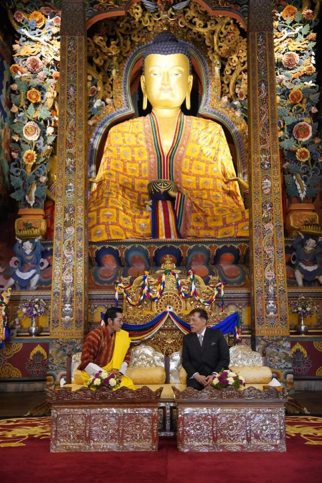 Vào ngày 25 tháng 4, Quốc vương Maha Vajiralongkorn Phra Vajiraklaochaoyuhua và Hoàng hậu Suthida Bajrasudhabimalalakshana của Thái Lan đã được Quốc vương Jigme Khesar Namgyel Wangchuck và Hoàng hậu Jetsun Pema Wangchuck đón tiếp tại vương quốc Himalaya. Cặp đôi hoàng gia Thái Lan đã lưu lại trong bốn ngày với tư cách là khách quý của Quốc vương và Hoàng hậu Bhutan, với một trong những điểm nhấn là buổi tụng kinh chung của tăng đoàn Thái-Bhutan tại tượng Phật Dordenma vào ngày thứ Bảy.
