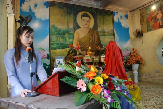 Phật tử Diệu Thái – Cẩm Vân – Phó chủ nhiệm CLB TTN Phật tử Quán Sứ dẫn chương trình