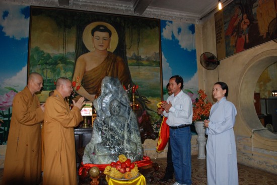 Cuối buổi lễ chư tôn đức cùng Quý vị đại biểu làm lễ niêm hương bạch Phật trì tụng Đại Bi và khai quang Tượng Phật Ngọc.